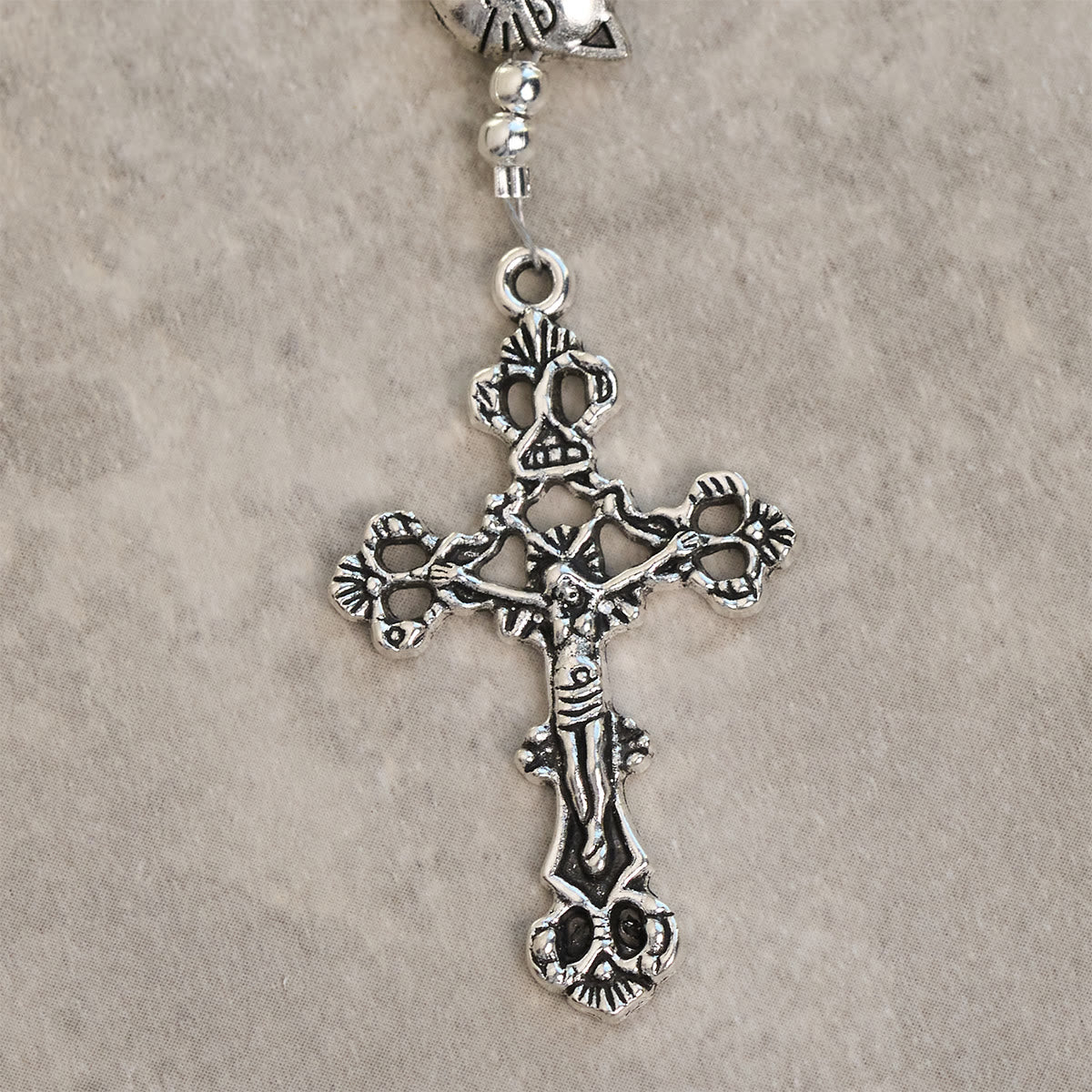 • Limiti di dimensioni: a causa delle sue dimensioni, questo rosario è progettato solo per la preghiera tenuta in mano e non è adatto per essere indossato.