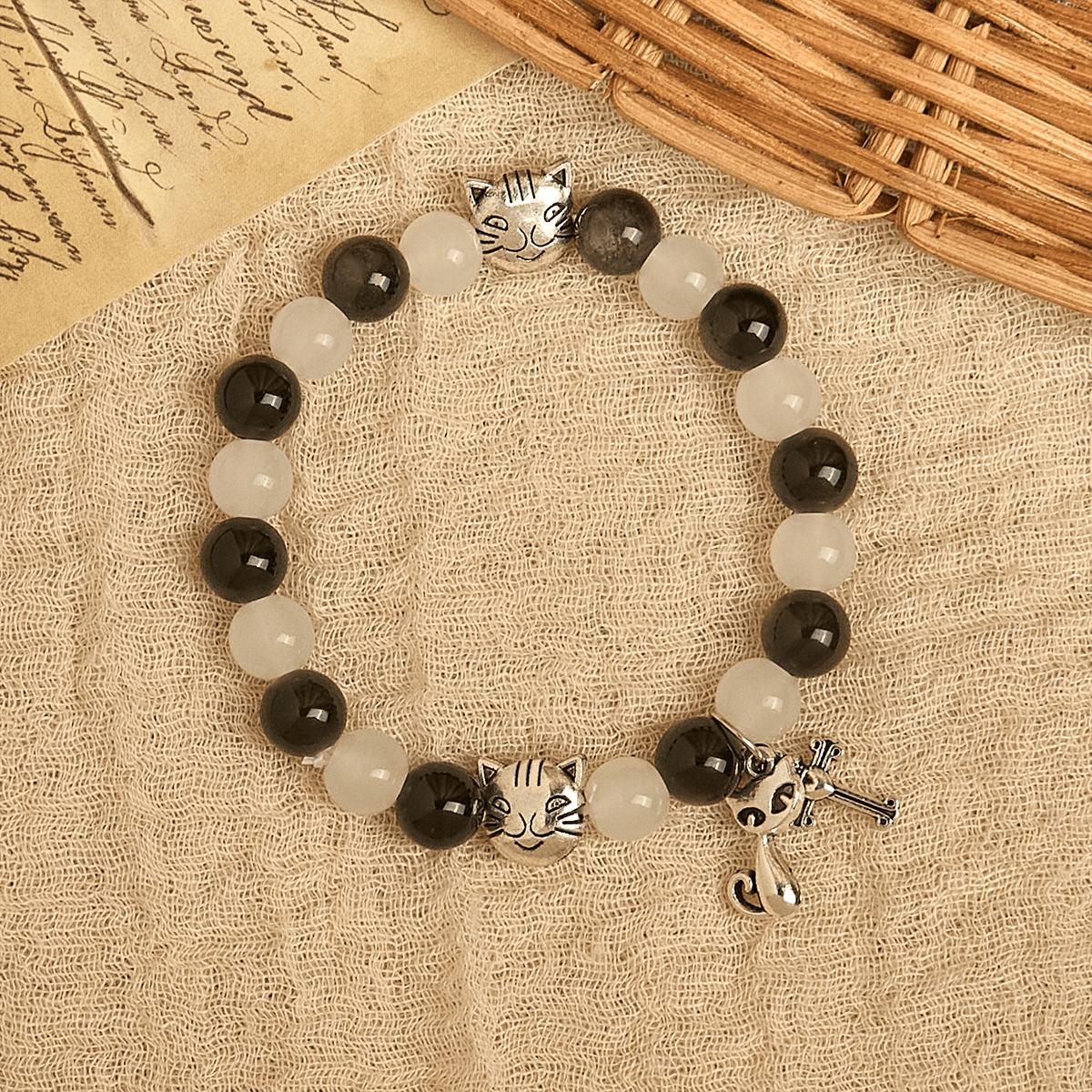Questo rosario unisce fede e compassione attraverso i suoi caratteristici grani bianchi e neri, che richiamano l'affascinante motivo "mucca-gatto". Decorato con ciondoli in acciaio inossidabile a forma di muso di gatto, trasforma la preghiera in devozione e in una celebrazione della creazione divina.