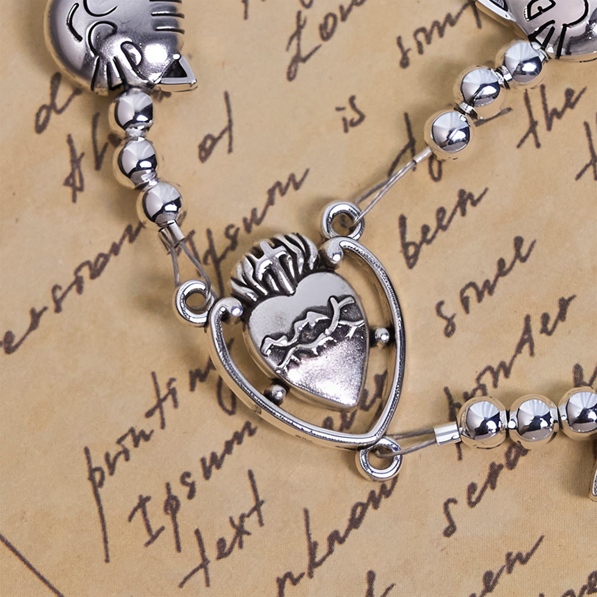 Il fulcro del Sacro Cuore è un potente emblema dell'infinita compassione di Cristo, del suo amore sacrificale e della sua protezione divina. - Perline a forma di faccia di gatto: celebrare la creazione vivente di Dio