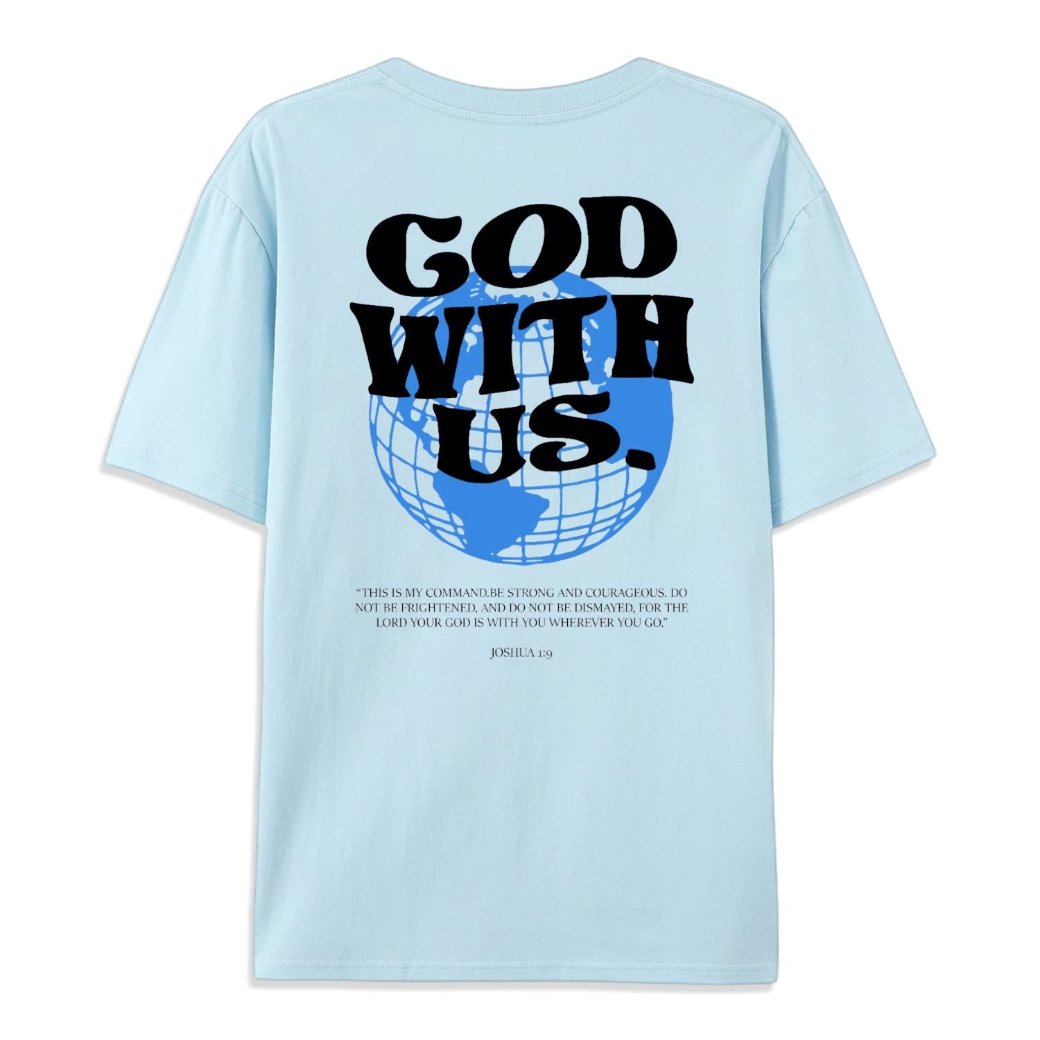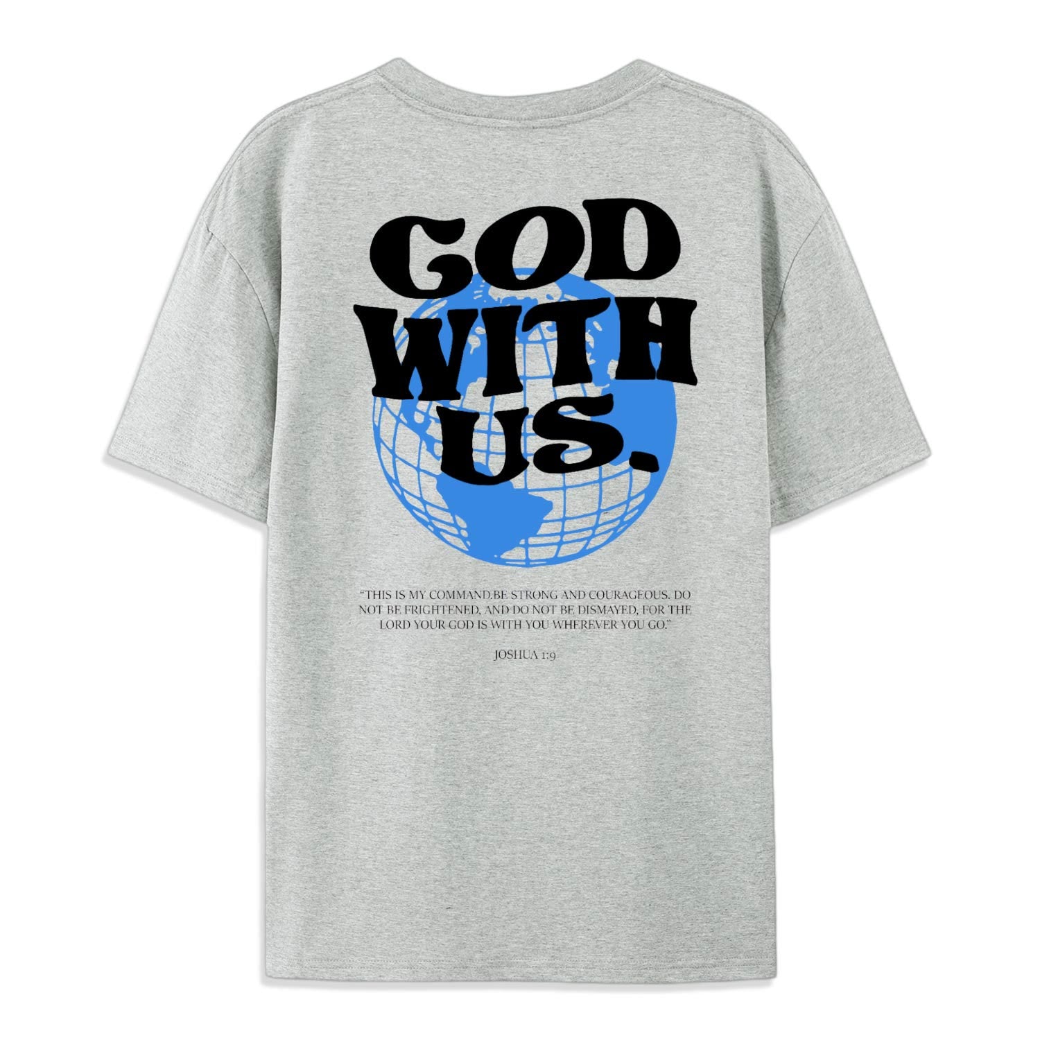 Abbraccia la forza e il coraggio che derivano dalla presenza divina con la maglietta "Dio con noi". Ispirata al potente versetto di Giosuè 1:9, questa maglietta ti ricorda costantemente che non sei mai solo: ovunque tu vada, Dio è con te.
