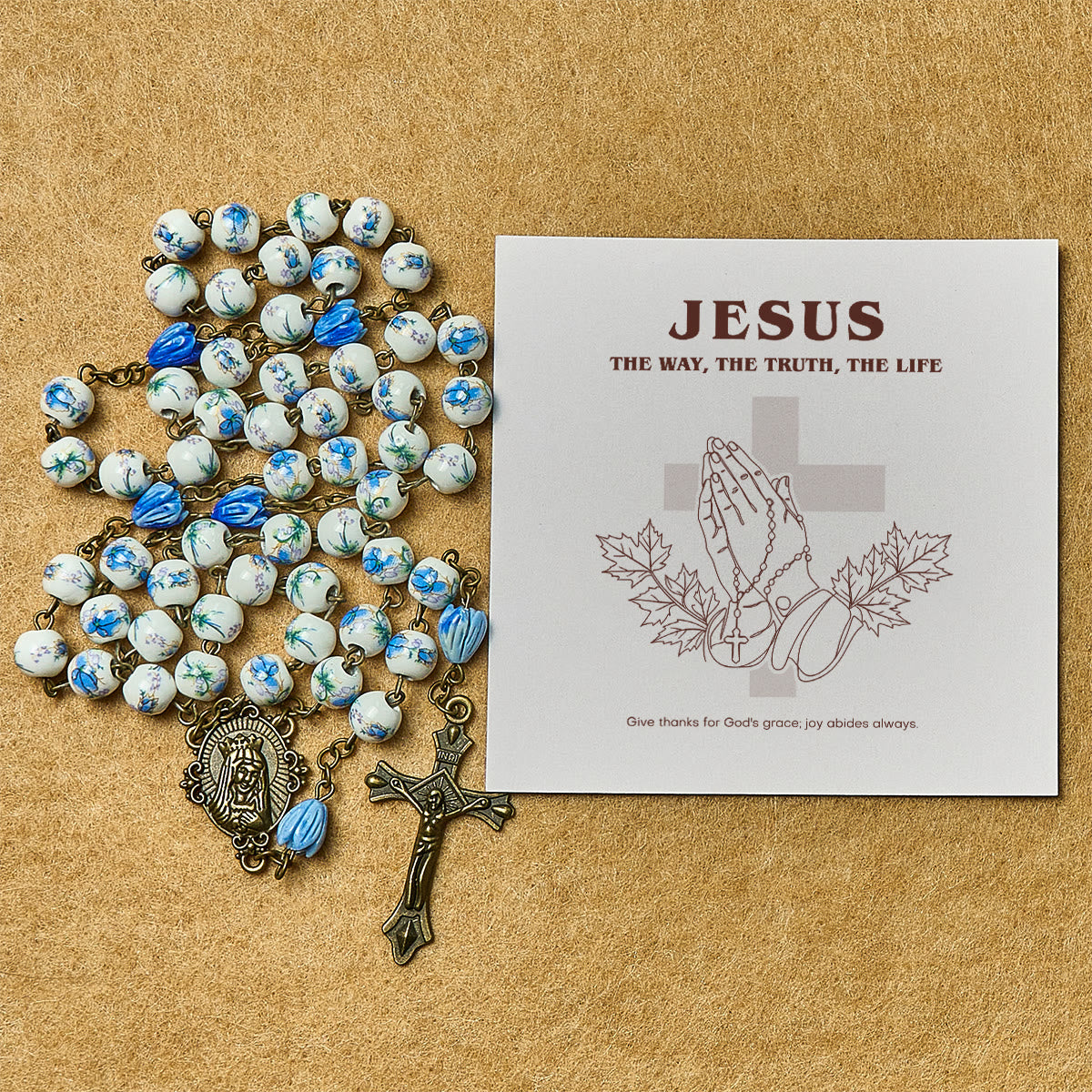 Il nostro rosario in ceramica floreale blu con il Cuore Immacolato di Maria e il Crocifisso è un regalo premuroso e sentito per ogni occasione, dai sacramenti come la Prima Comunione, la Cresima e il Battesimo, alle festività speciali come Natale e Pasqua. È una splendida espressione di sostegno per i propri cari nel loro cammino spirituale e una celebrazione della loro fede. - Un emblema di protezione e guarigione