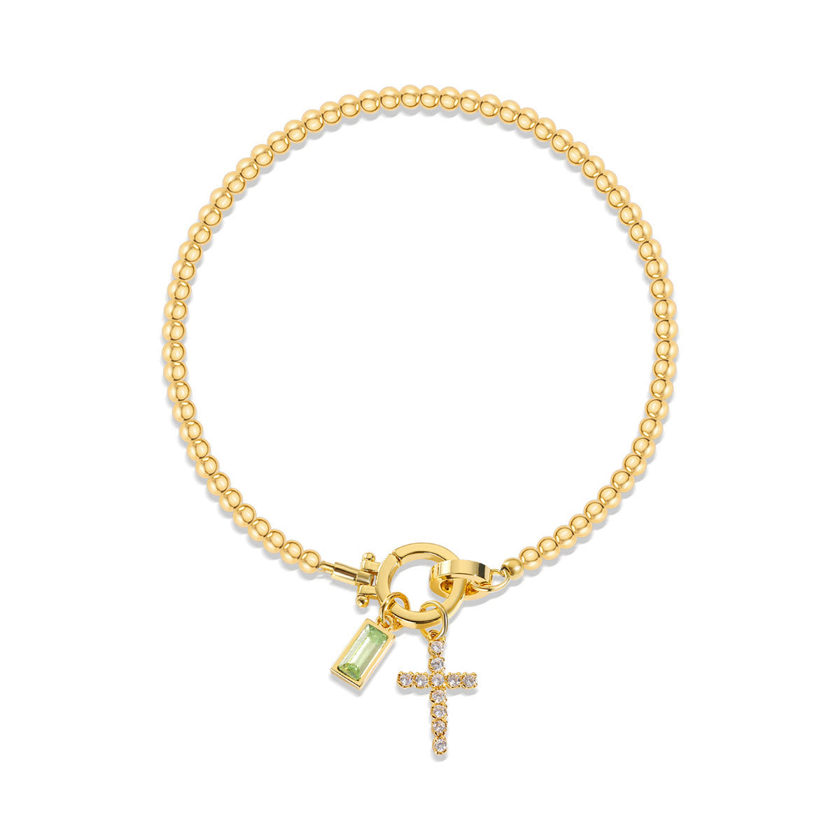 Vi presentiamo i nostri braccialetti con perline a croce e pietra portafortuna: pezzi eleganti e significativi pensati per esprimere devozione, con 12 opzioni di zirconi colorati per una connessione spirituale personalizzata. - Simbolismo della croce sacra e della pietra portafortuna