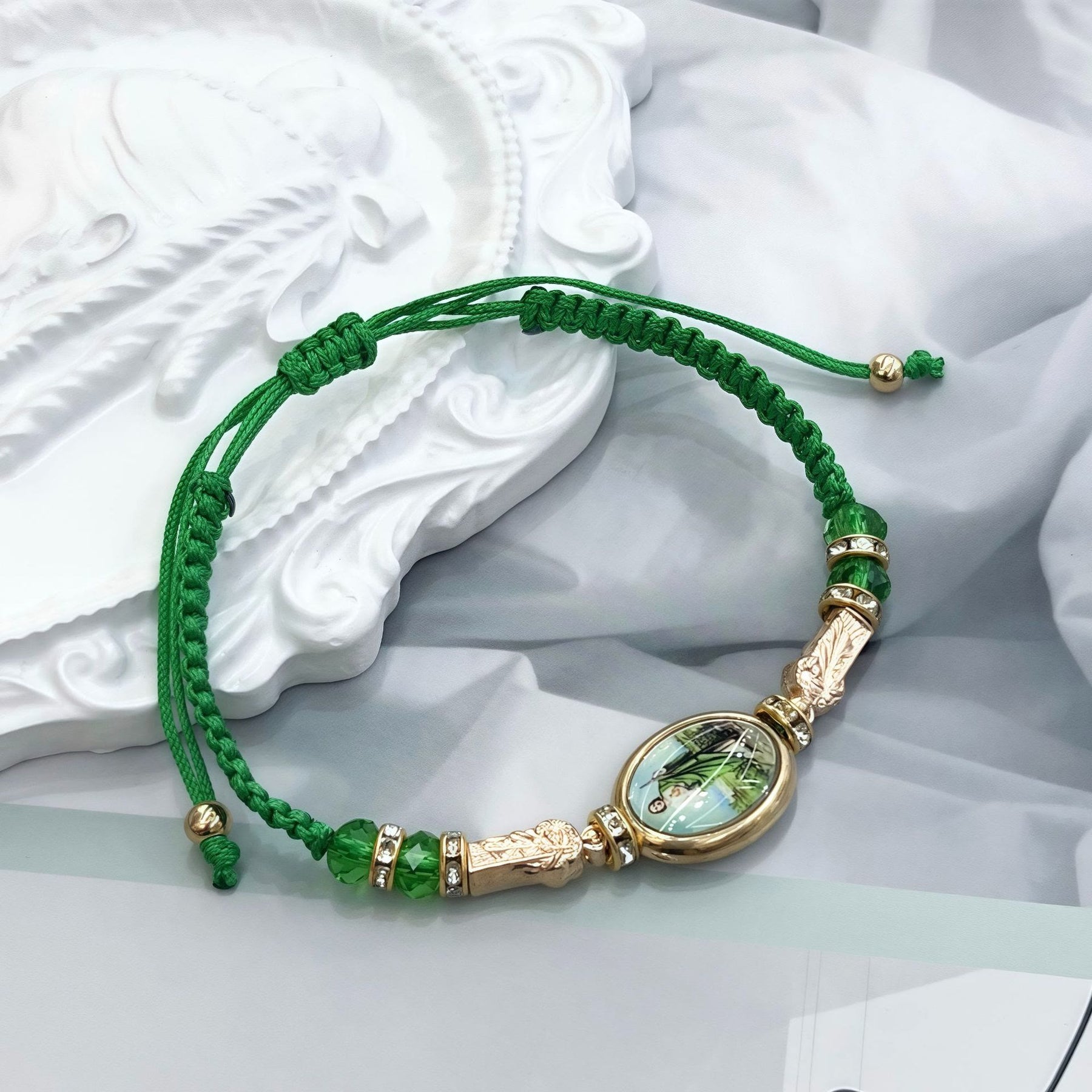Braccialetti regolabili in corda verde di San Giuda per benedizioni e guida divina