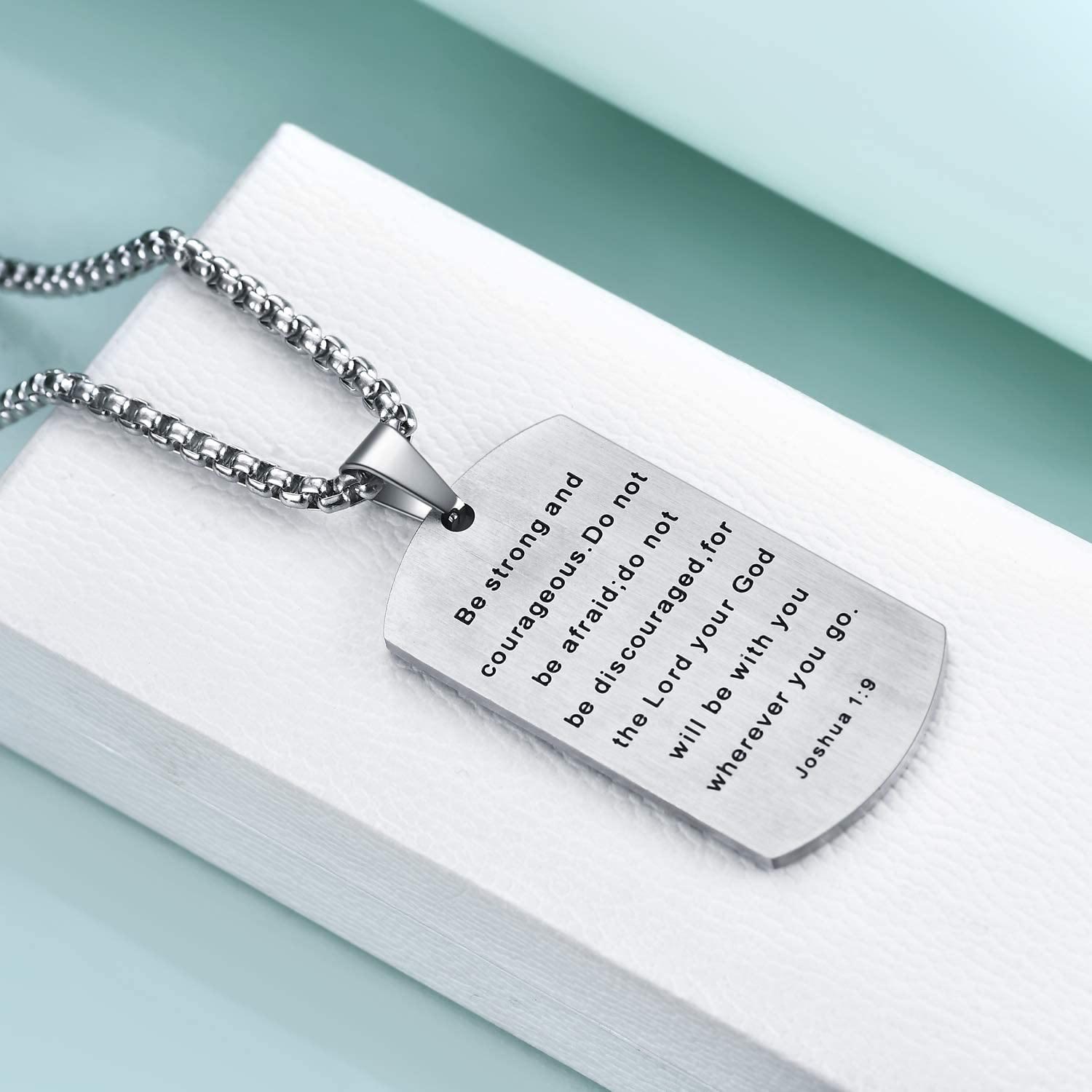 Collana bifacciale con croce in acciaio inossidabile e Giosuè 1:9 per il coraggio
