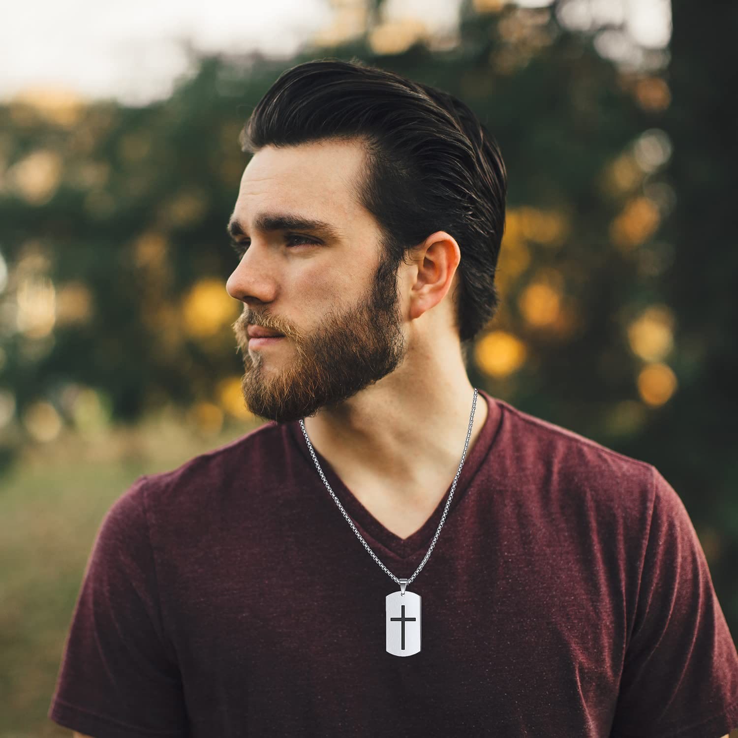 Questa non è solo una collana: è un pezzo di armatura spirituale per i fedeli contemporanei, che unisce il design robusto in acciaio inossidabile all'intramontabile ispirazione biblica.