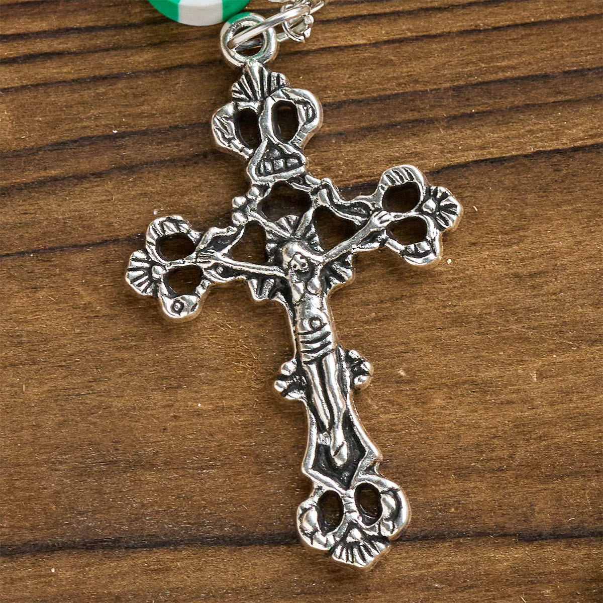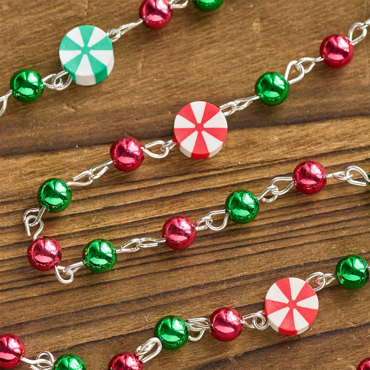 Decorato con perline colorate a forma di caramella (in rosso, verde e menta piperita), un crocifisso d'argento finemente lavorato e medaglie religiose, ogni componente fonde il calore gioioso del Natale con una spiritualità reverente. - Devozione intrecciata con design natalizio e senza tempo