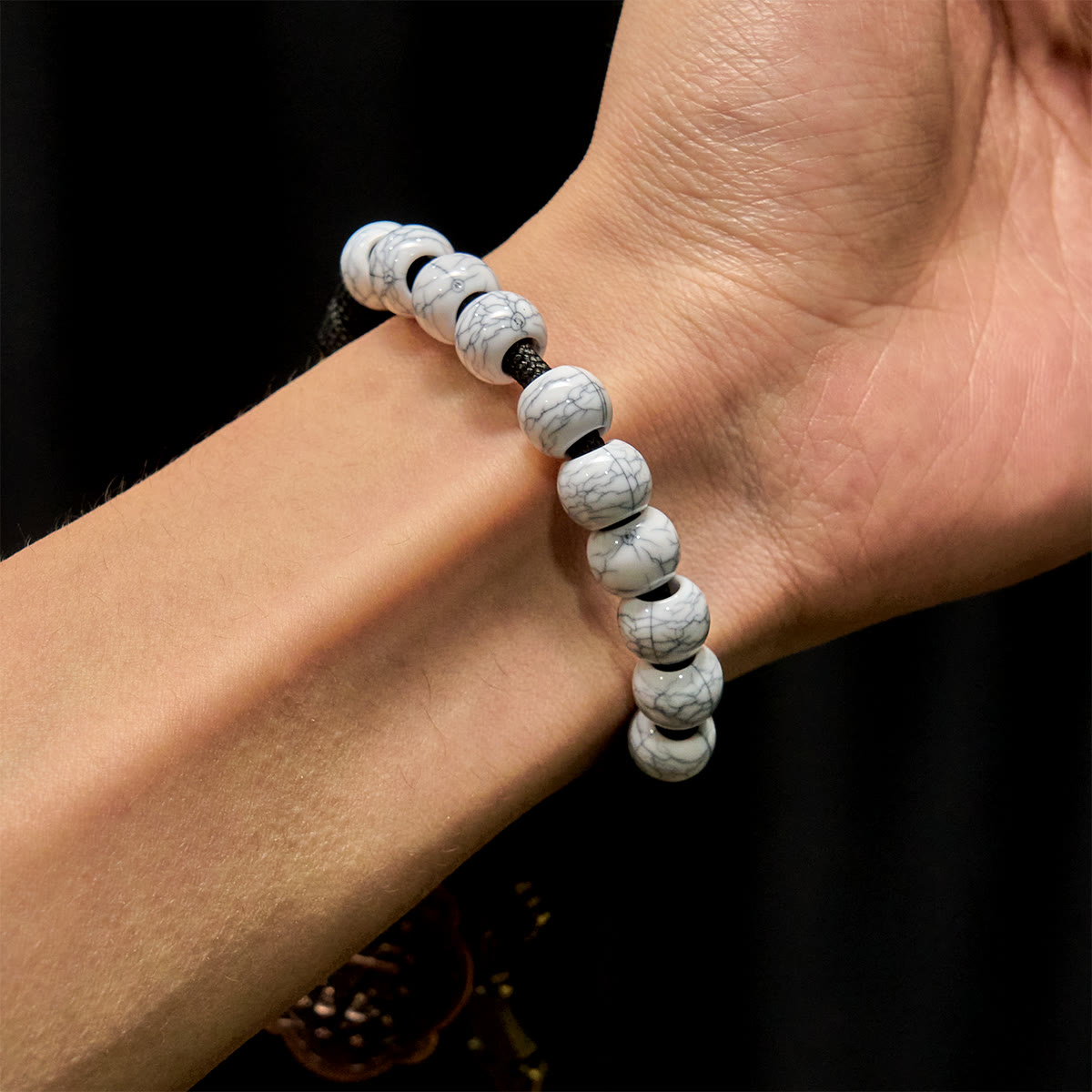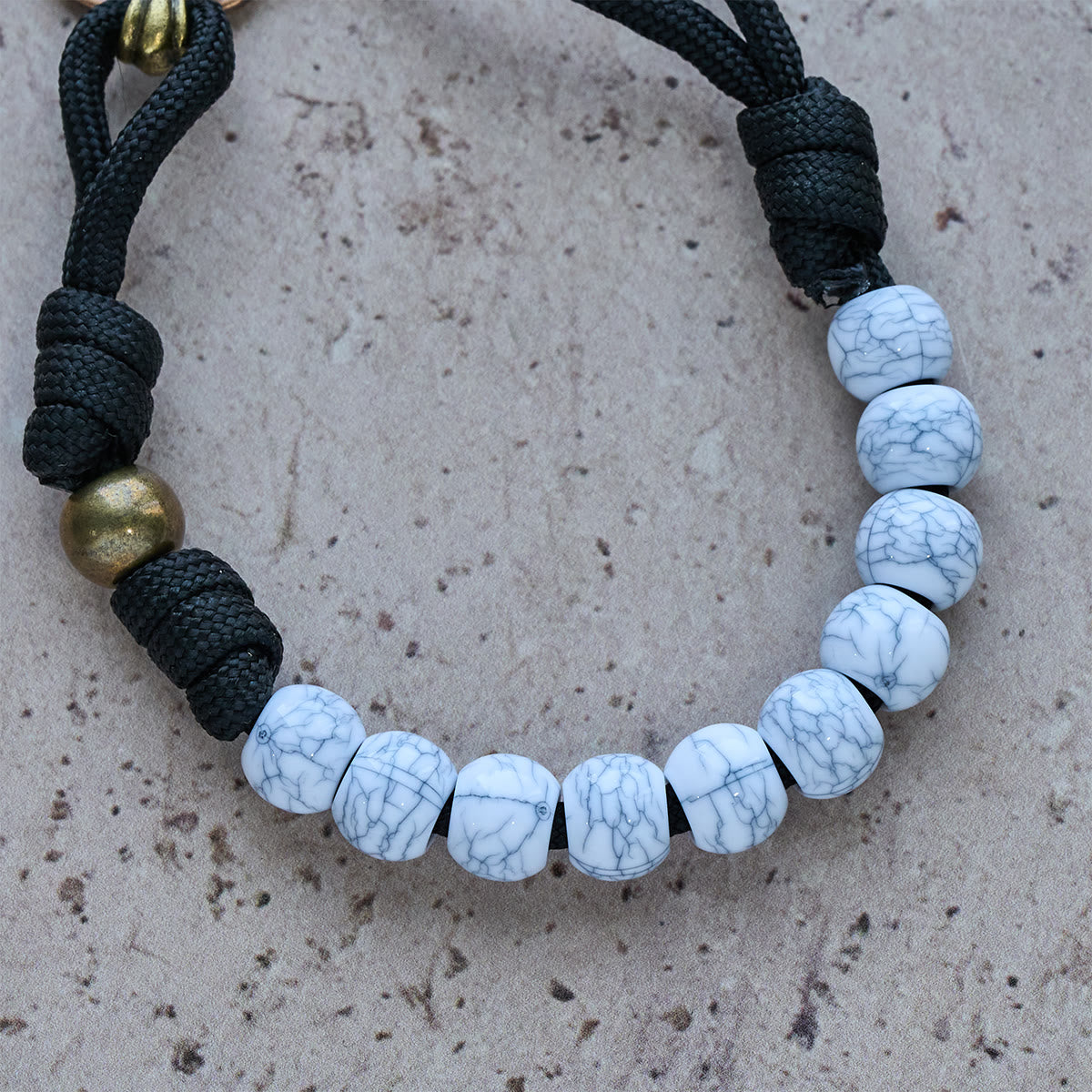 Questo rosario tascabile, realizzato con grani craquelé bianchi opachi e un crocifisso in ottone decorato, porta la devozione nel ritmo della vita quotidiana. Le venature morbide e frammentate dei grani riflettono la purezza raffinata attraverso le sfide, un silenzioso promemoria che la grazia accompagna ogni passo. - Porta con te la preghiera