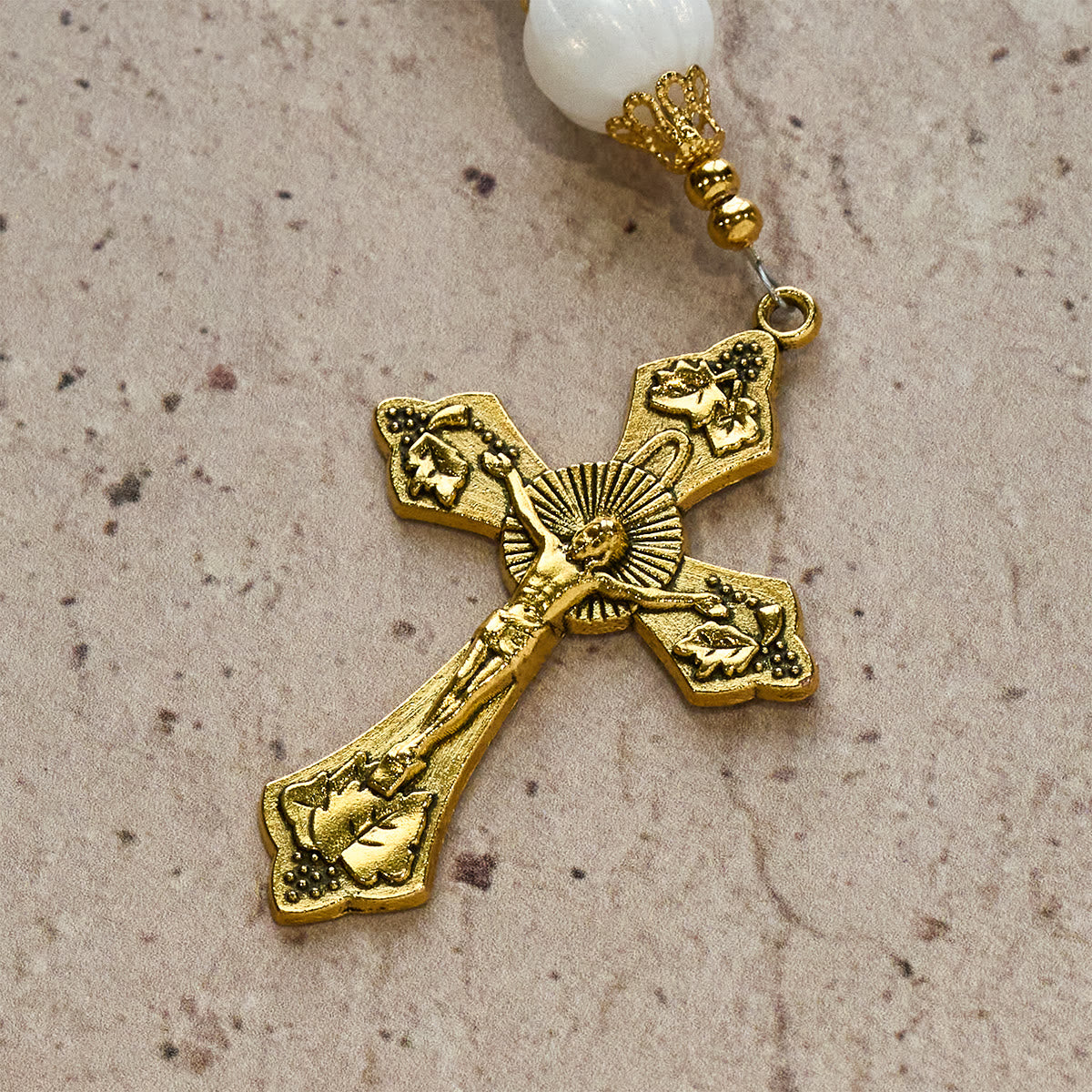 Il dettagliato crocifisso dorato proclama il sacrificio di Cristo, ancorando la tua devozione e approfondendo la riflessione sulla salvezza con ogni perla. - Perline lisce per il ritmo della preghiera