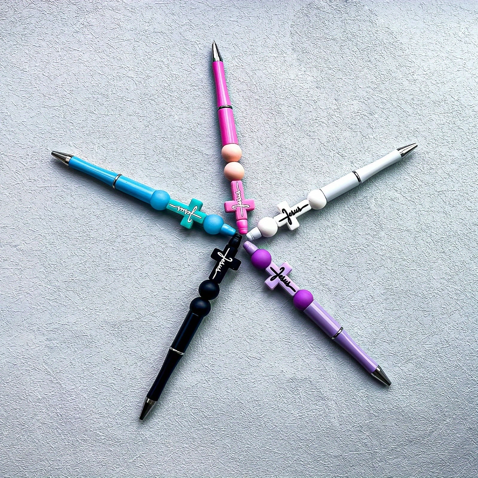 Ogni penna è impreziosita da un ciondolo a forma di croce e da colori vivaci, abbinati a perline lisce. È pensata per onorare il tuo percorso di fede, unendo un design elegante al simbolismo divino. - Uno strumento quotidiano di devozione