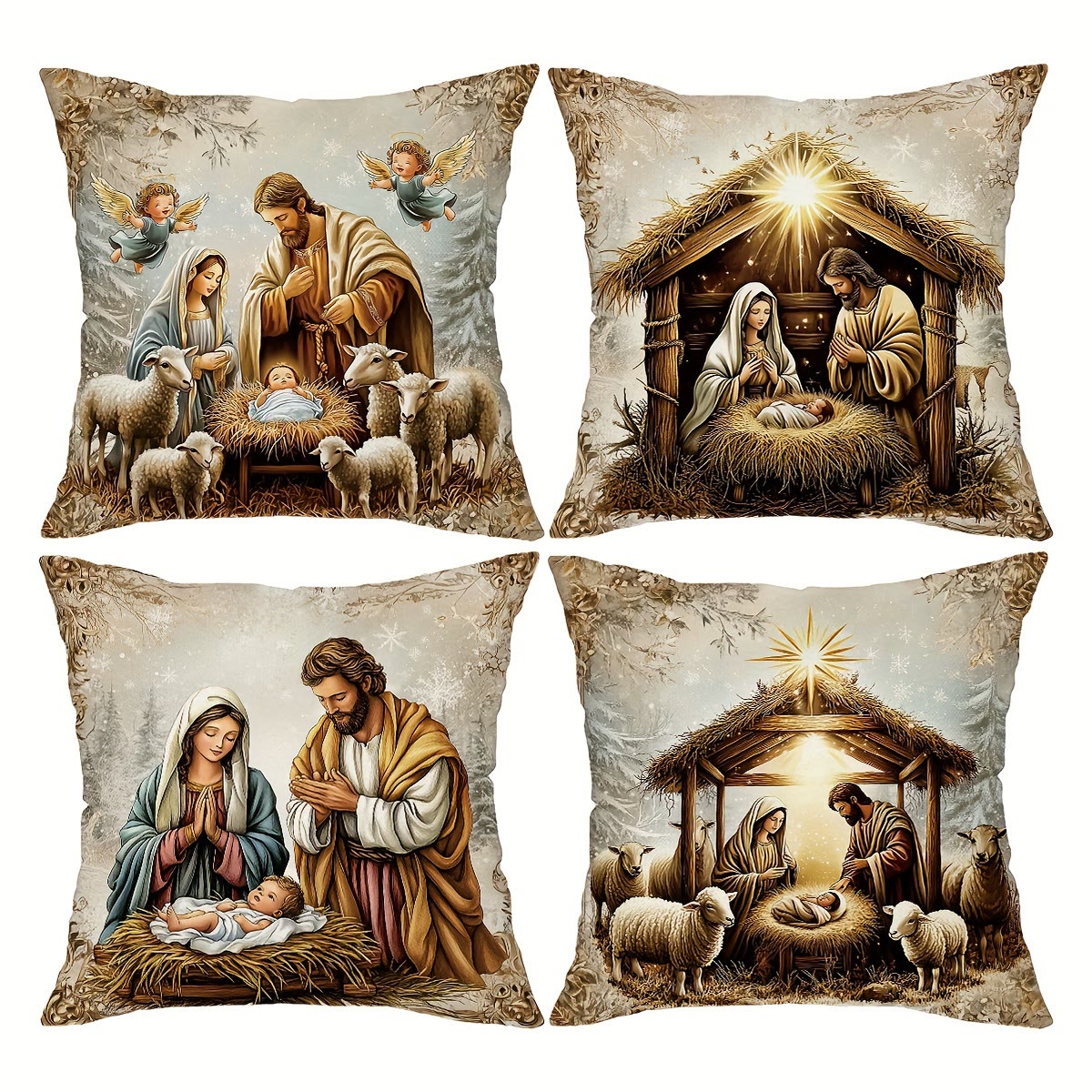 Cuscino a tema Natività Christianartworkshop da 4 pezzi: compagno silenzioso per le zone giorno