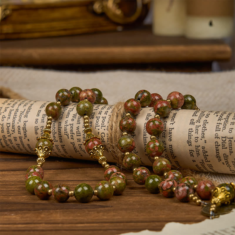 • Deliziatevi con l'eleganza e la grazia spirituale del nostro rosario artigianale. Ogni grano è meticolosamente lucidato, fondendo delicate tonalità di verde terroso e calde tonalità di rosa per esaltare la vostra esperienza di preghiera. Il rosario presenta intricati dettagli dorati e un crocifisso splendidamente dettagliato, simbolo di fede incrollabile e speranza eterna.