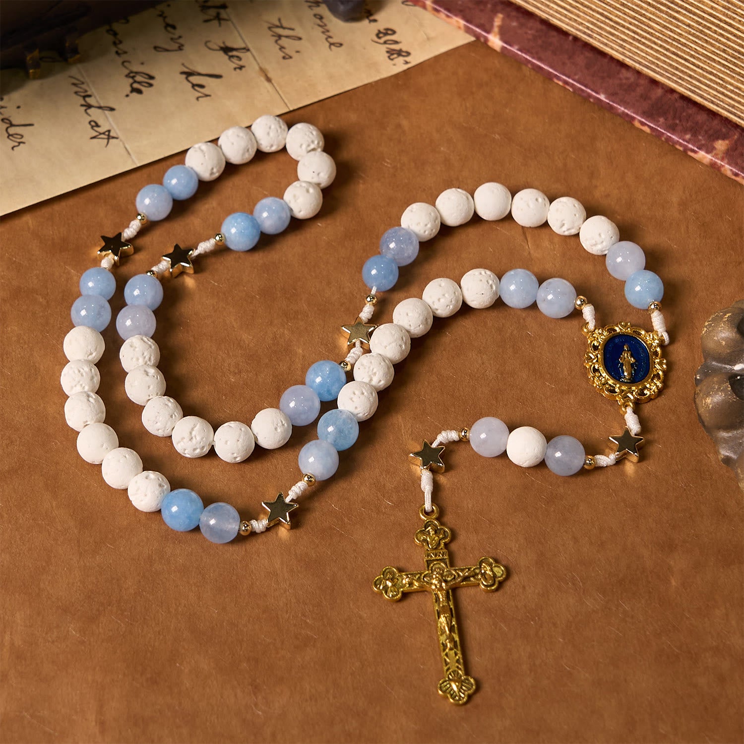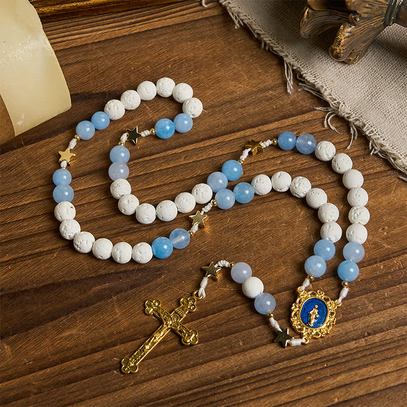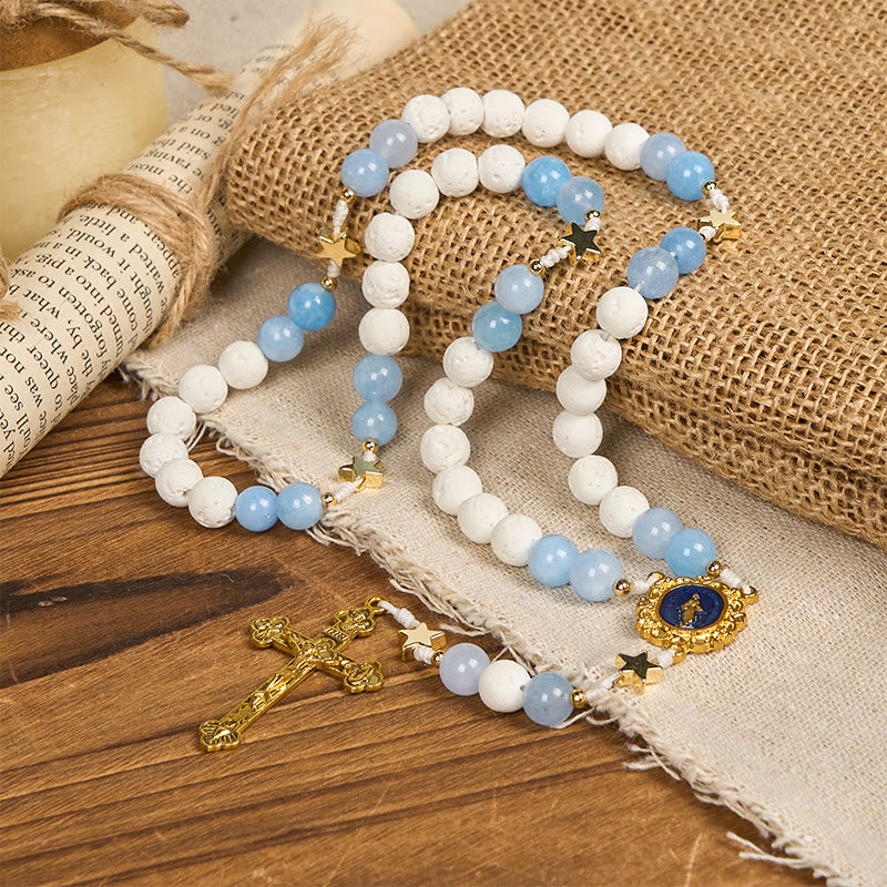 Abbraccia la tranquillità della preghiera con il nostro Rosario della Beata Serenità, un meraviglioso promemoria della tua fede e devozione. I grani lisci e bianchi simboleggiano la purezza, riflettendo la grazia della Vergine Maria. Ogni grano è una preghiera, che offre pace e conforto mentre mediti sull'amore e sugli insegnamenti di Cristo. - Graziose stelle del cielo