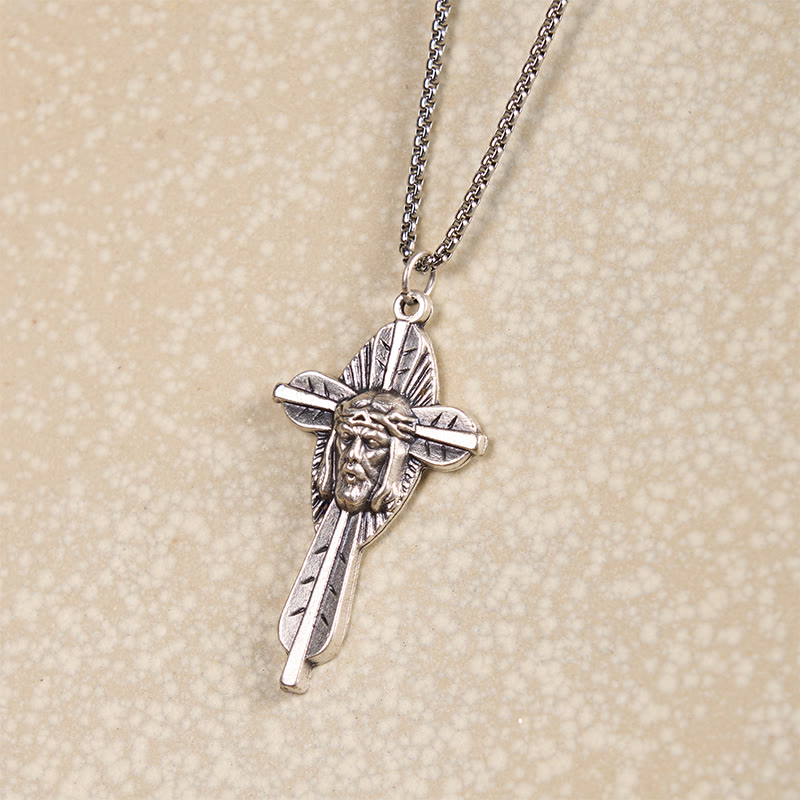 Collana con ciondolo a forma di croce con icona di Gesù in stile retrò e crocifisso benedetto