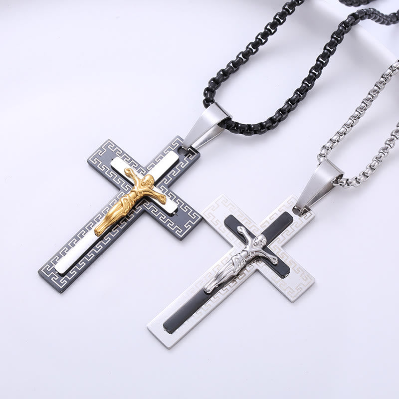 Collana in titanio con ciondolo a crocifisso a triplo strato in stile retrò