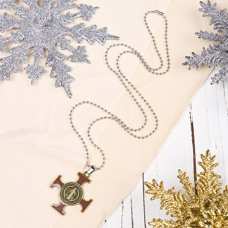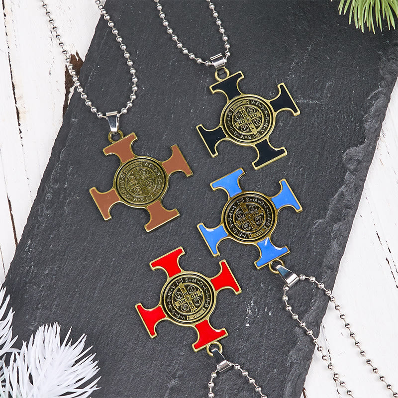 Collana con ciondolo di protezione della croce di San Benedetto in stile classico