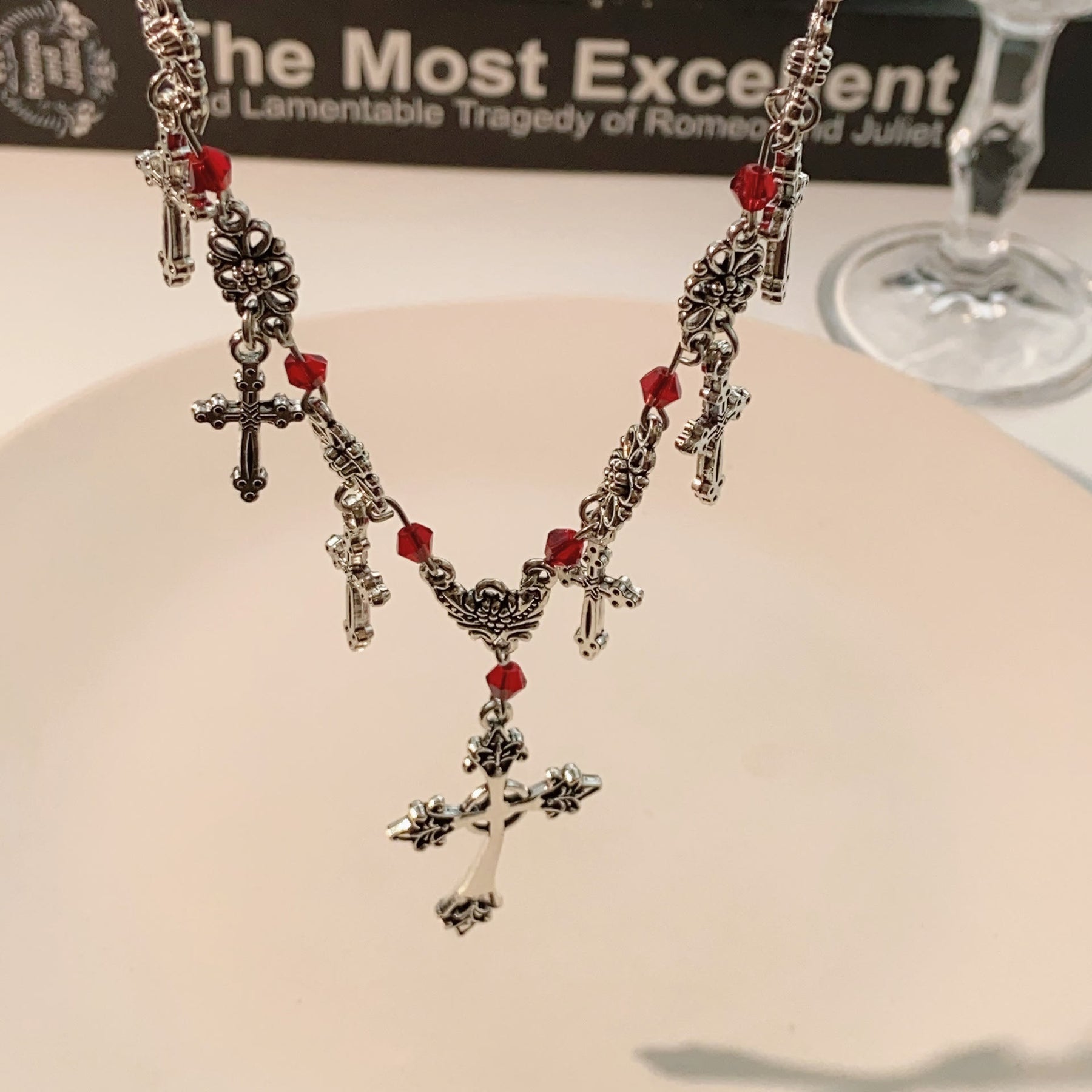 Design Sacro: la collana presenta una serie dettagliata di piccole croci adornate da delicate perline rosse, disposte ad arte per mettere in risalto la croce centrale, dal design intricato. Questo design sacro cattura l'essenza della fede e della devozione, fungendo da costante promemoria di forza e grazia spirituale.