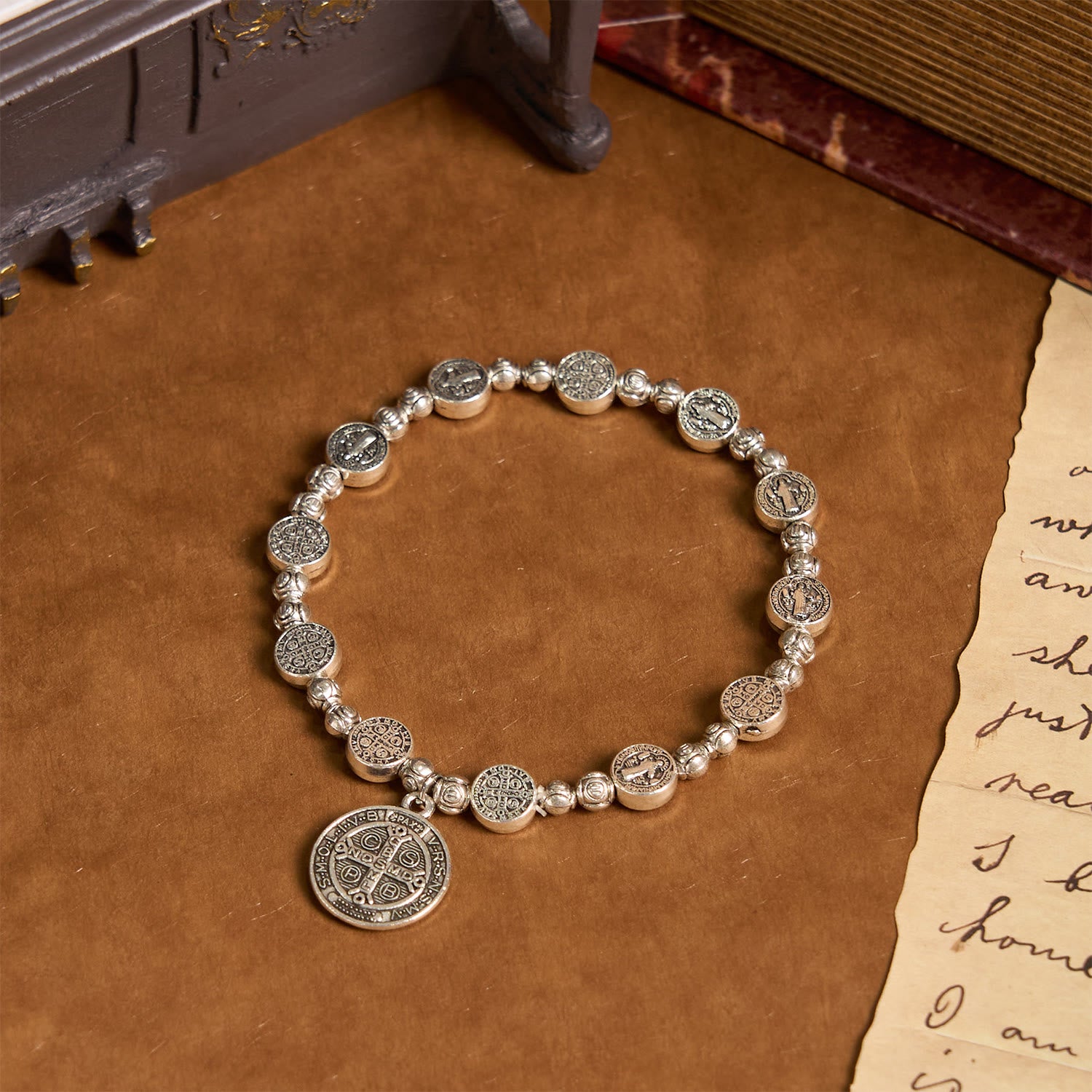 Bracciale con crocifisso di San Benedetto e rosa Christianartworkshop : accessorio cristiano senza tempo per l'espressione quotidiana della fede