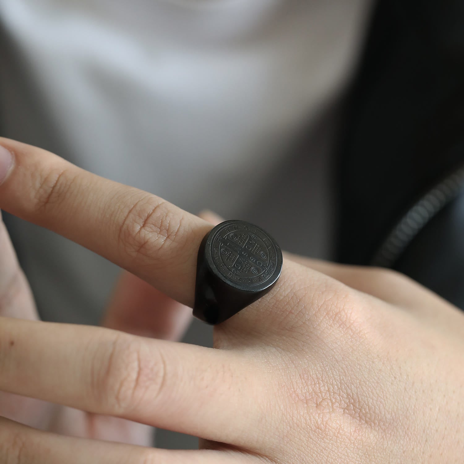 Christianartworkshop 8 stili retrò classico anello di protezione inciso con simbolo di San Benedetto