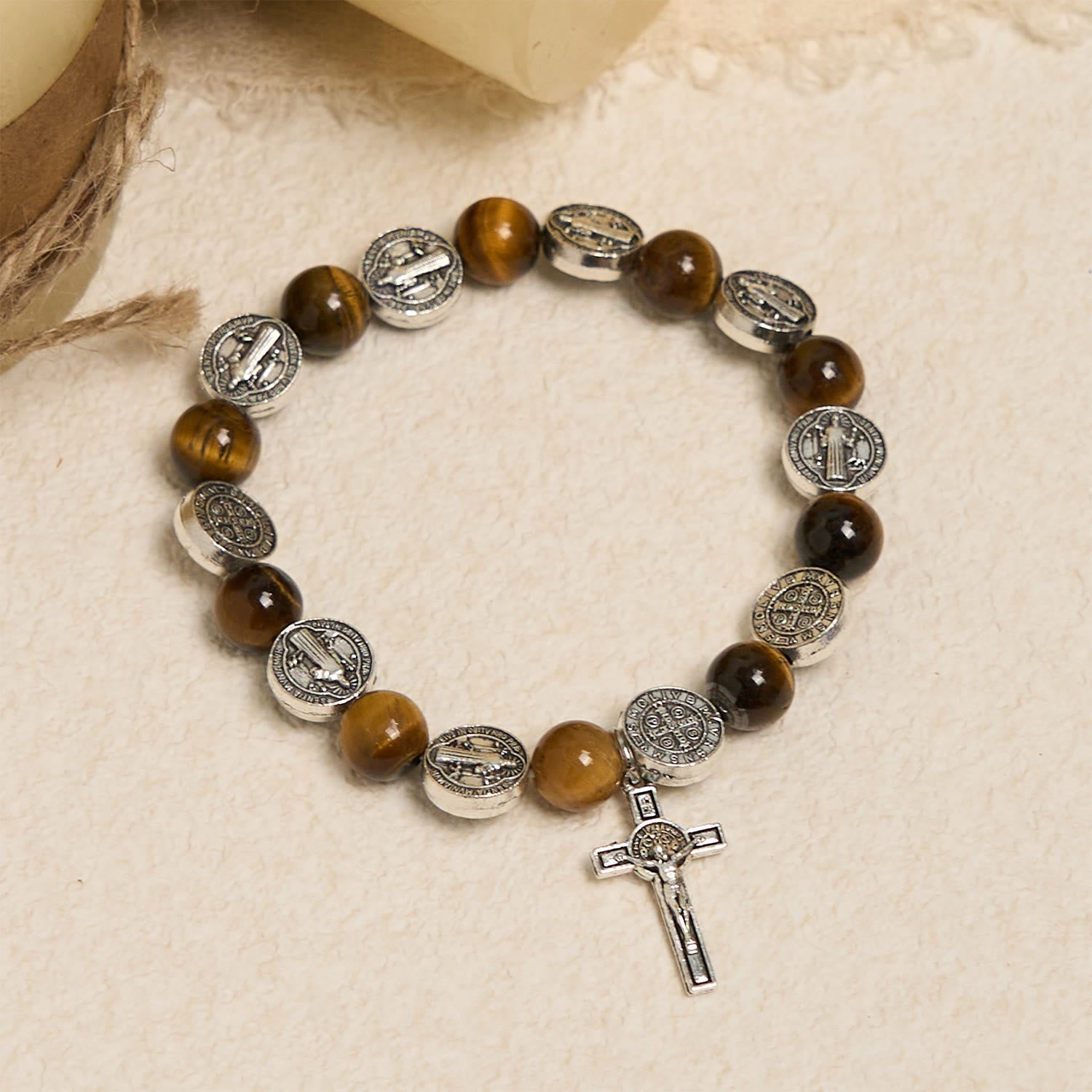 Bracciale in occhio di tigre con simbolo di San Benedetto: un mix di fede e bellezza