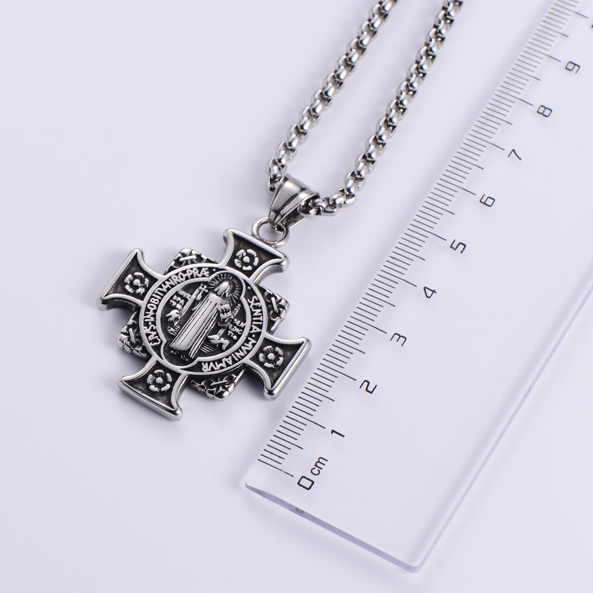 Collana con ciondolo a croce con medaglia di protezione di San Benedetto Christianartworkshop
