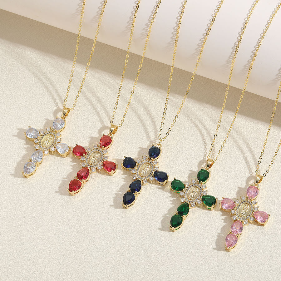Collana con ciondolo a croce in zircone della Madonna di Guadalupe in stile moderno