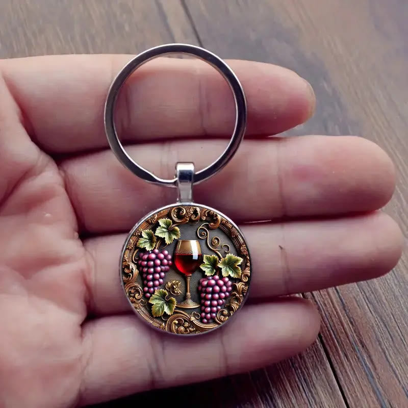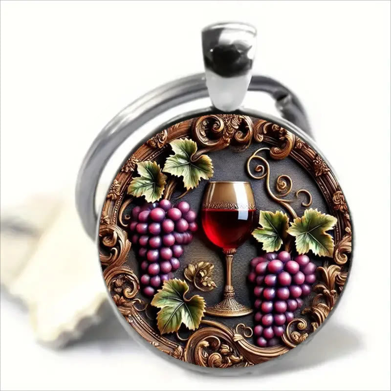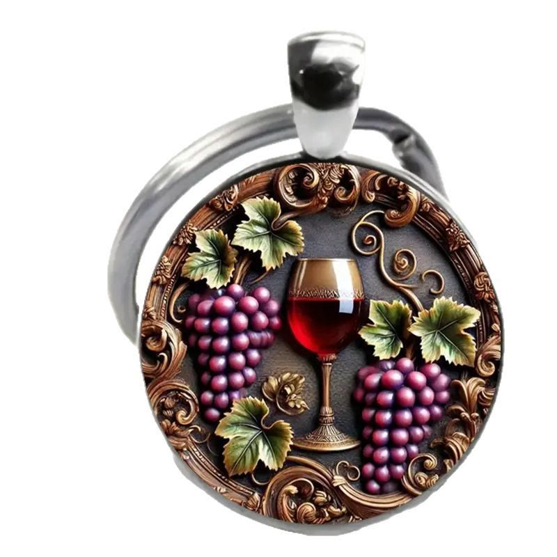 Il portachiavi artistico "Sacramento del Vino e dell'Uva" è un profondo emblema di fede. Caratterizzato da uva e vino, onora il significato sacro del sacramento, che si collega al sacrificio di Cristo e al nutrimento spirituale. - Creato per la devozione alla narrazione
