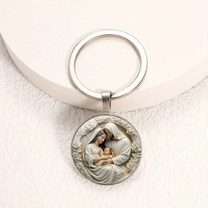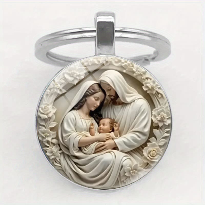 Questo portachiavi raffigura la Sacra Famiglia – Gesù, Maria e Giuseppe – un emblema senza tempo di amore, devozione e unità. Portarlo con sé è un promemoria quotidiano della guida di Dio, della forza dei legami familiari e della bellezza della fede nella vita di tutti i giorni. - Progettato per l'ispirazione quotidiana