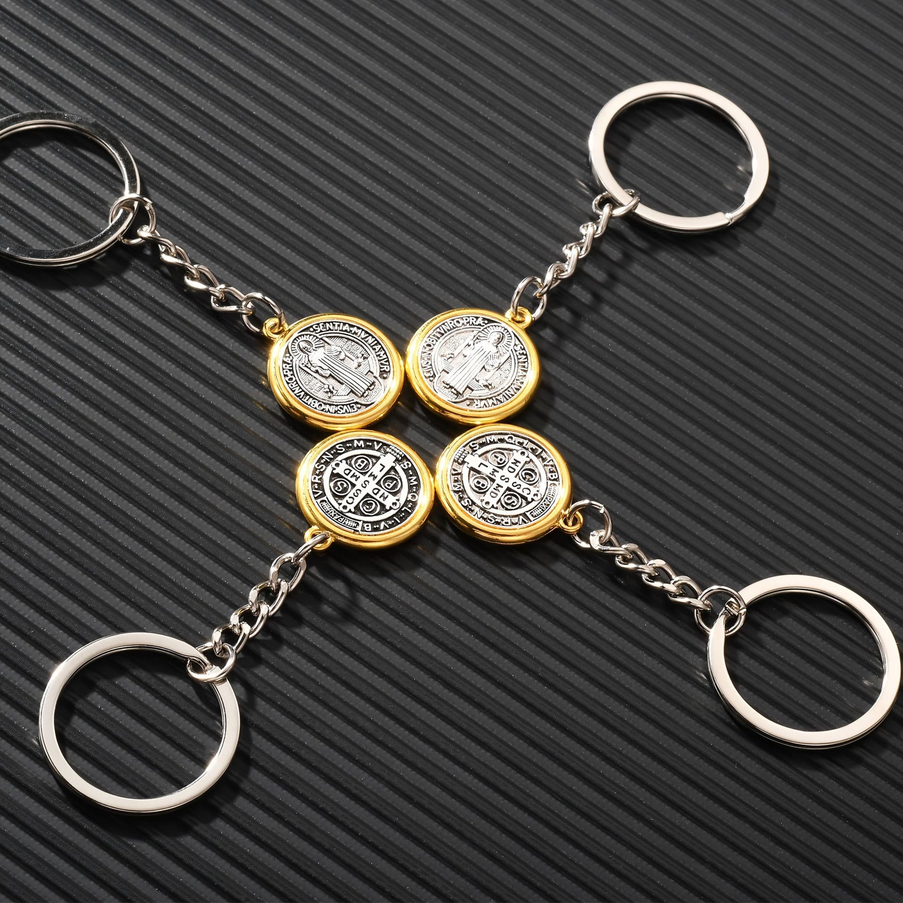 Questo classico portachiavi di San Benedetto con bordo dorato presenta una venerata medaglia di San Benedetto. Il bordo dorato incornicia intricati simboli spirituali, che rappresentano la protezione divina e una devozione incrollabile, portando con sé l'eredità della fede. - Artigianato squisito