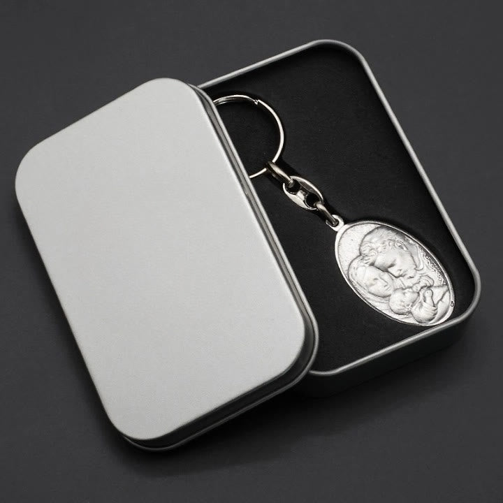 Portachiavi con ciondolo della Sacra Famiglia e dello Spirito Santo in stile retrò: simbolo splendente dell'unità familiare