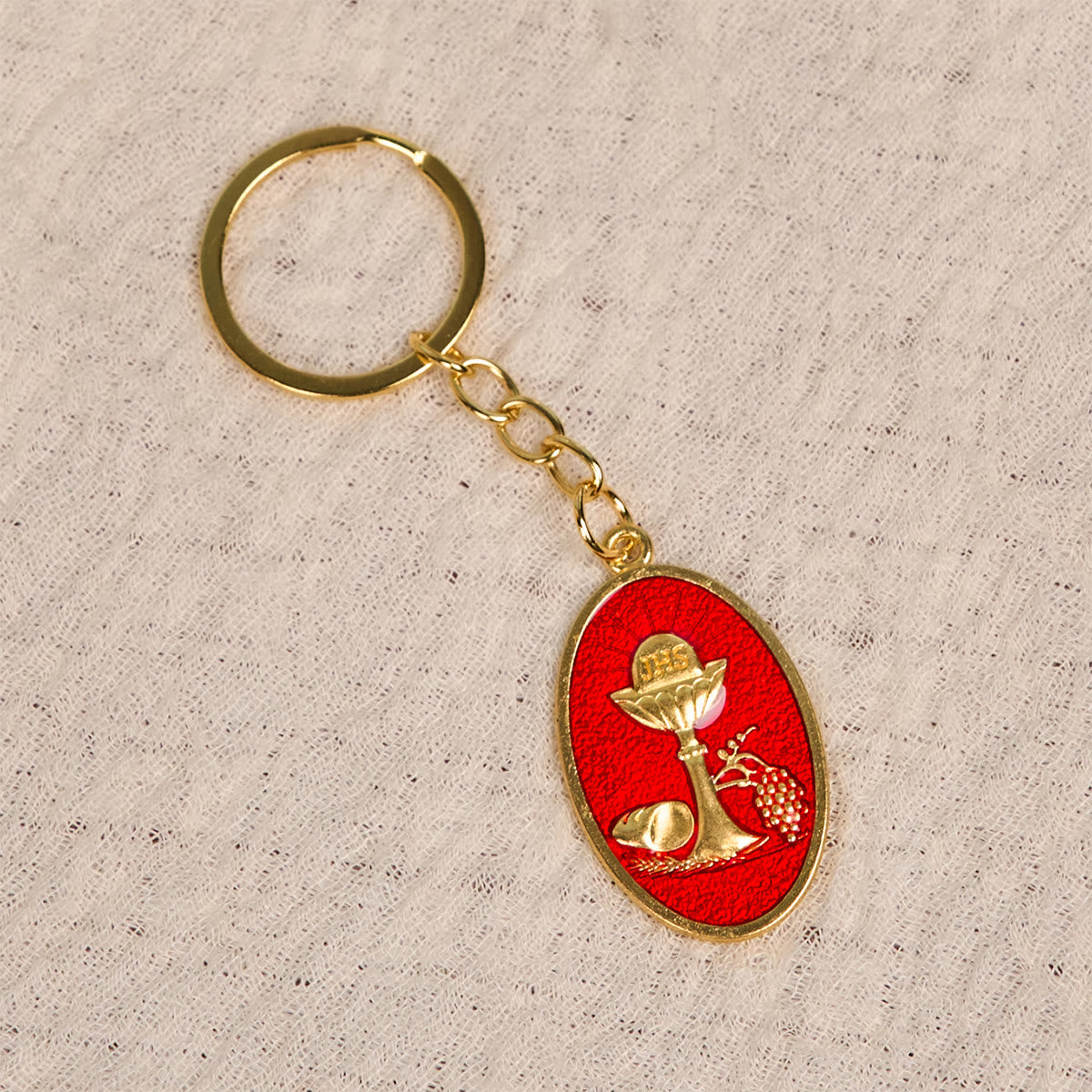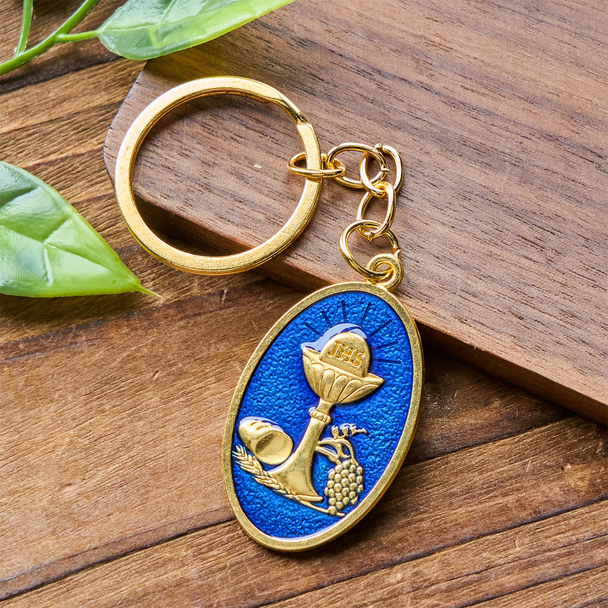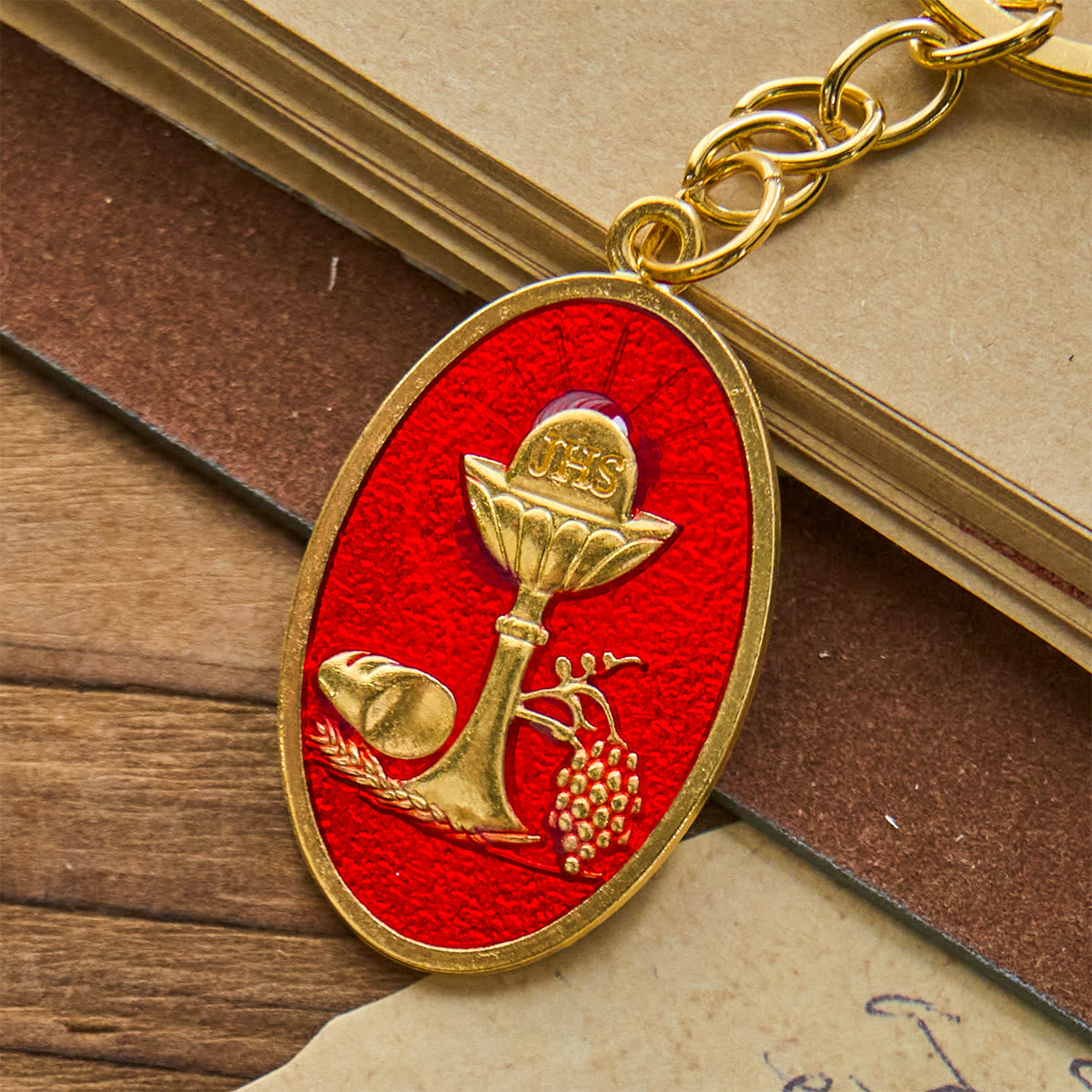Rosso per il coraggio forgiato nelle prove, blu per la pace che va oltre la comprensione: ogni portachiavi a forma di calice è un sorso tangibile di presenza divina.