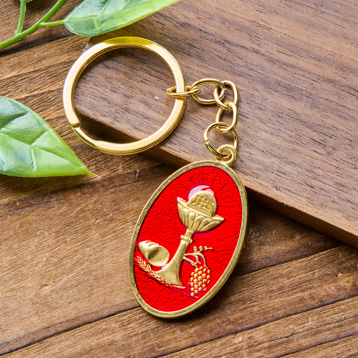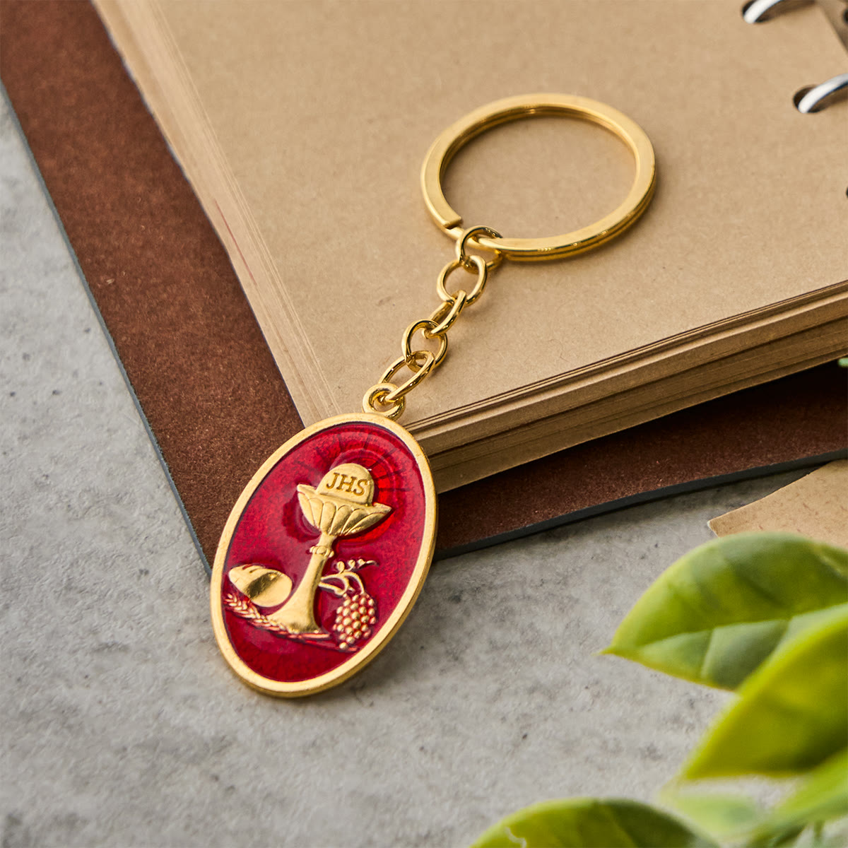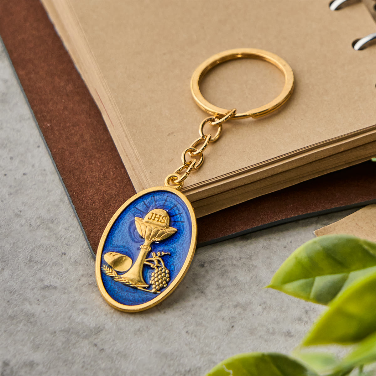 Rosso per il coraggio forgiato nelle prove, blu per la pace che va oltre la comprensione: ogni portachiavi a forma di calice è un sorso tangibile di presenza divina.