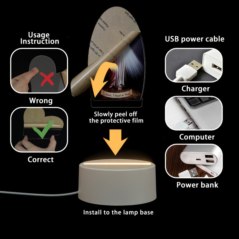 Lascia che questa luce notturna sia la tua grazia quotidiana. L'alone luminoso e le immagini sacre offrono conforto, avvolgendo le serate nella presenza divina e guidandoti a riposare nel calore della fede. - Ispirare la riflessione spirituale creativa