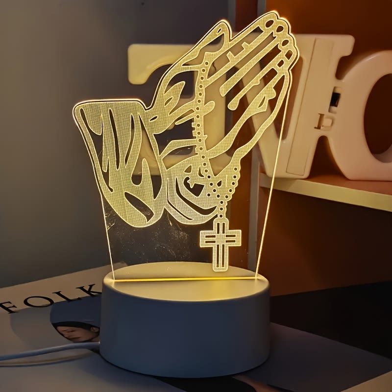 Questa luce notturna "Spiritful Glow Praying Hands" fonde simbolismo religioso e design moderno. Le mani in preghiera illuminate e il contorno del rosario emanano un bagliore sacro, trasformando il vostro spazio in un santuario di fede contemporaneo. - Fede - Comfort moderno