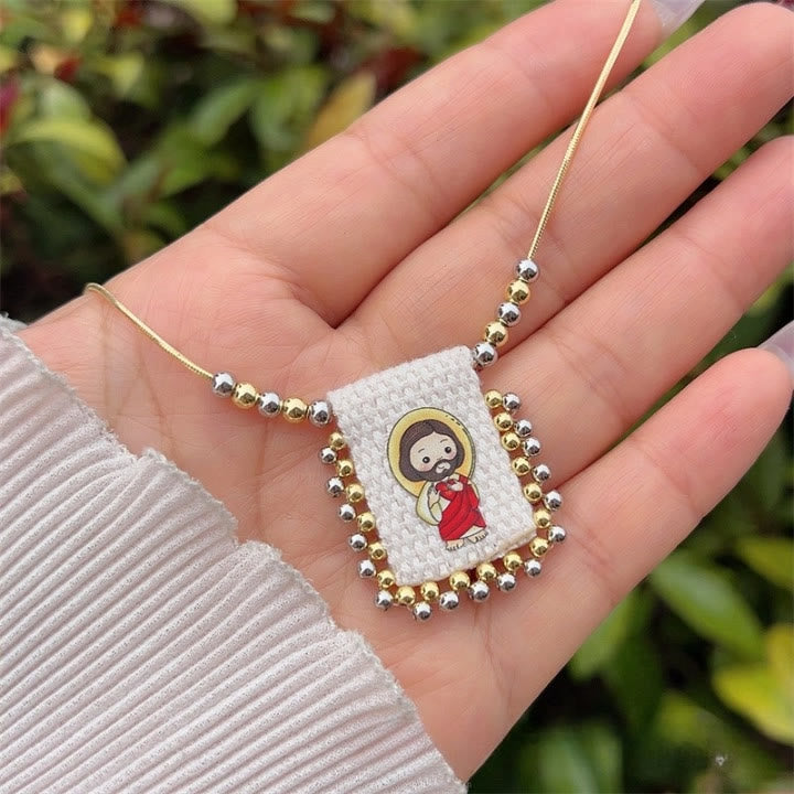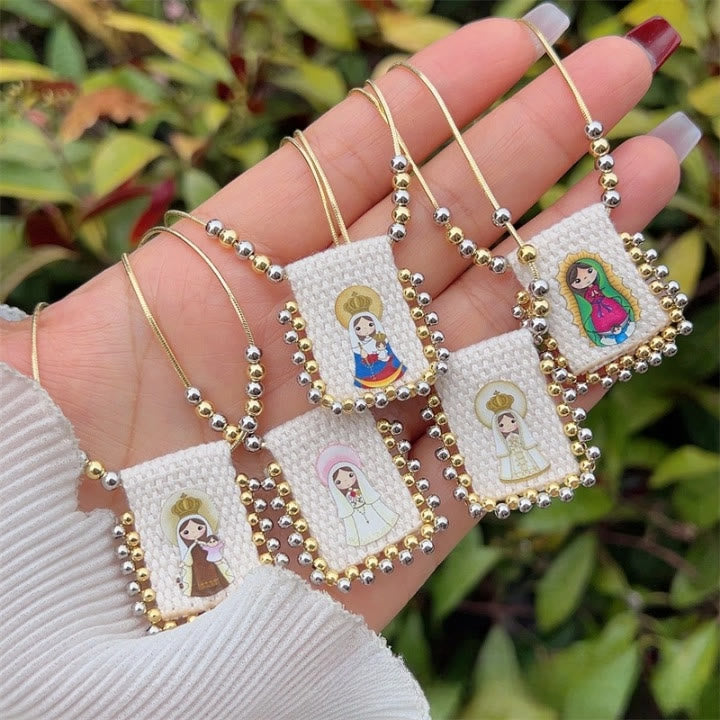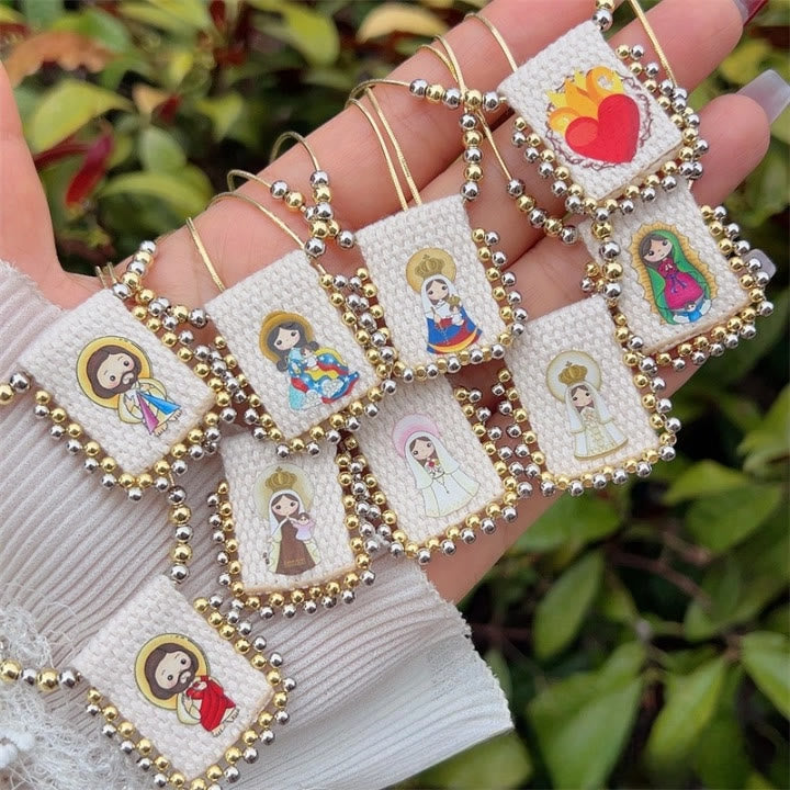 Ogni collana raffigura una figura religiosa dei cartoni animati, da delicate raffigurazioni di santi venerati a teneri ritratti di simboli sacri. - Realizzato con cura, indossato con orgoglio