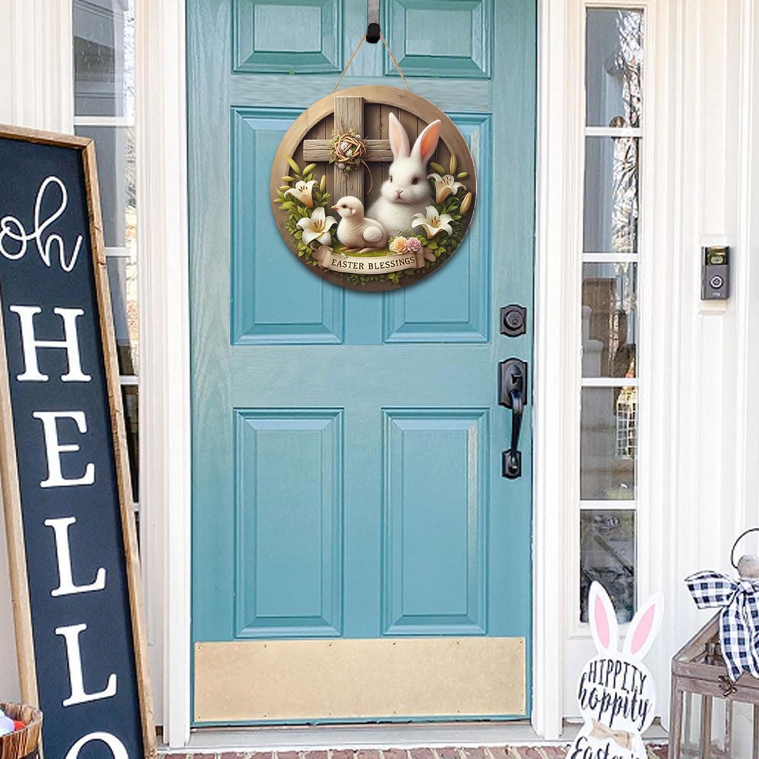 Ornamento da giardino in legno da appendere, coniglietto pasquale e croce, benedizione pasquale