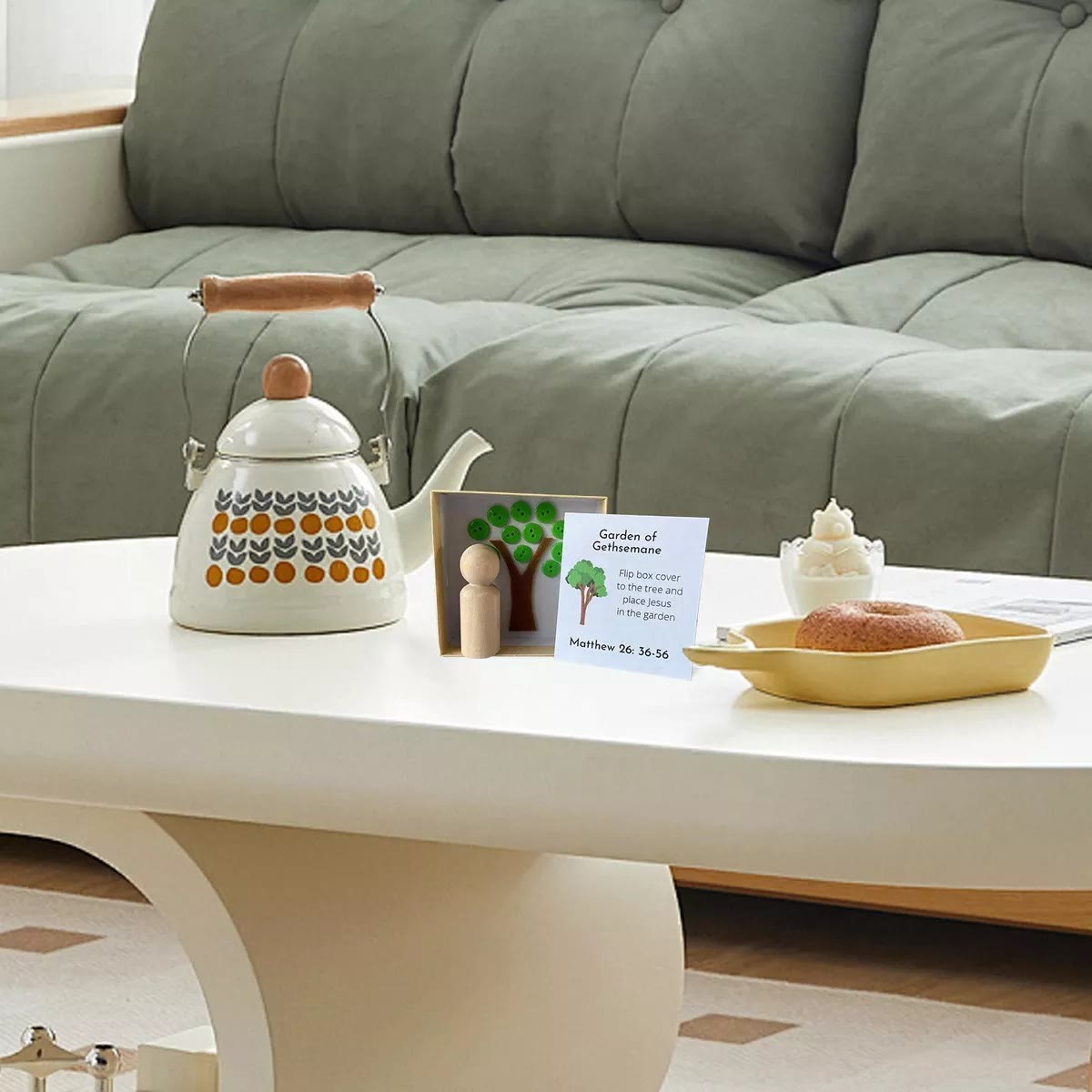 Apprendimento interattivo: ogni scatola contiene elementi pratici come statuette, pezzi di feltro e biglietti illustrati che guidano i bambini attraverso gli eventi della Settimana Santa.