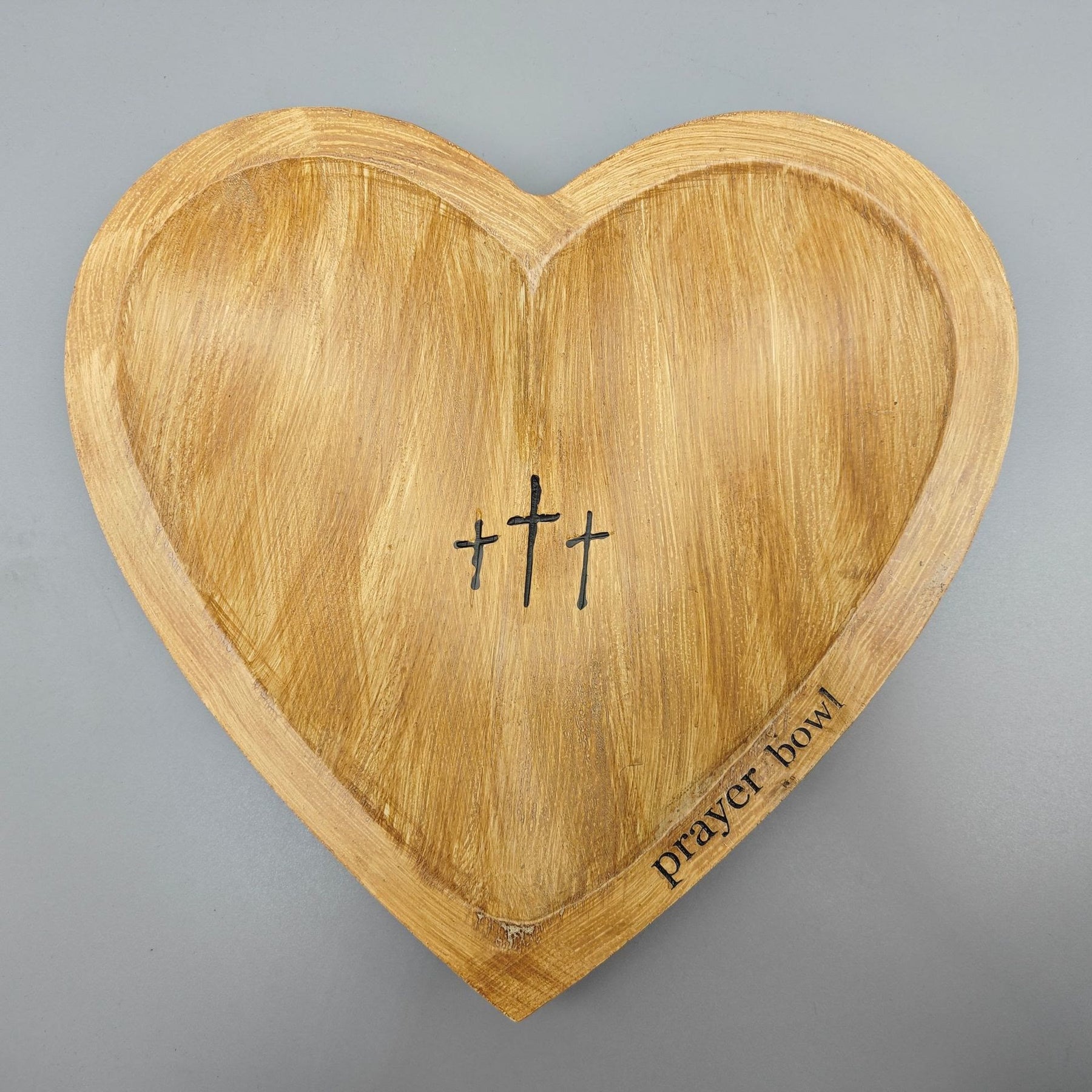 Vi presentiamo la Ciotola per la Preghiera in Legno, un contenitore splendidamente realizzato per contenere preghiere e pensieri. A forma di cuore e ornata da tre croci, questa ciotola per la preghiera è un potente simbolo di fede e devozione, perfetto per ogni famiglia cristiana. - Fatto a mano con amore e precisione