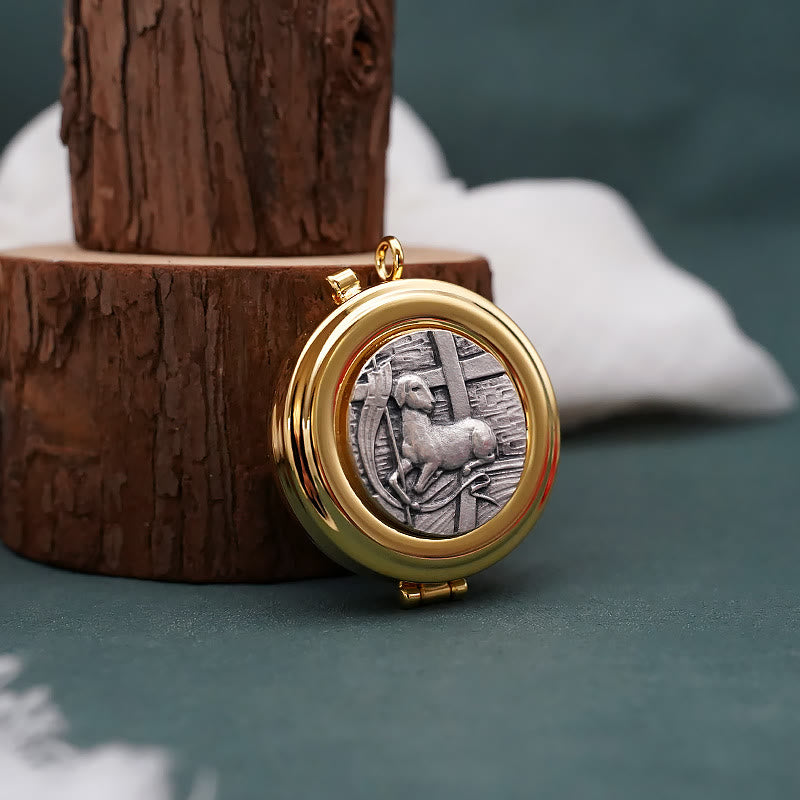 Christianartworkshop Pisside placcata in oro con statua di agnello – Vaso sacro per la Santa Eucaristia
