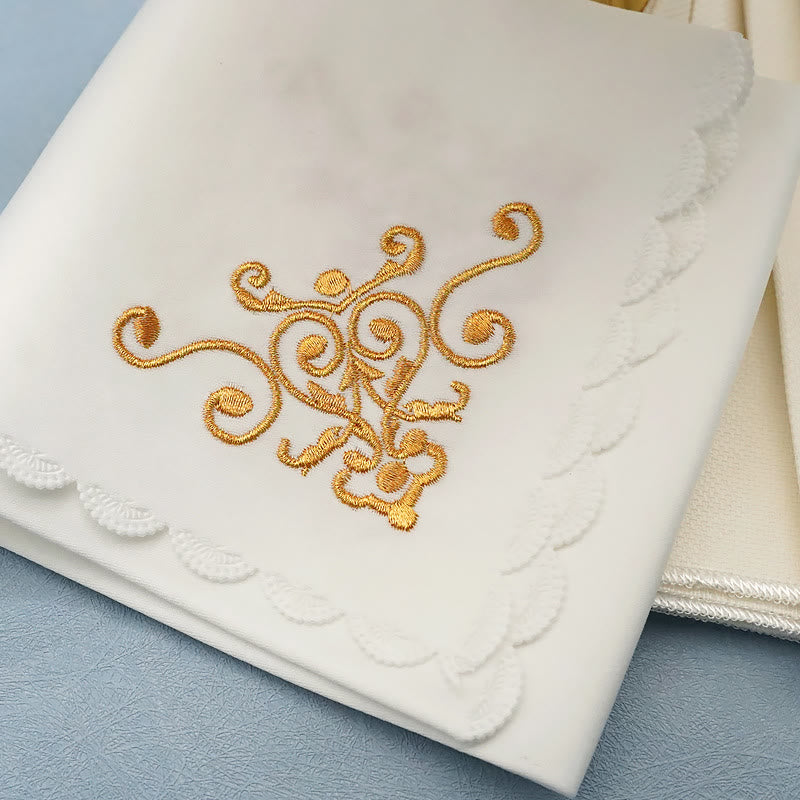 Set completo: questo set include un velo per calice e i purificatori abbinati, fornendo tutto il necessario per coprire e conservare il sacro calice durante la Messa. Ogni articolo è progettato per rispettare i più alti standard di significato liturgico.