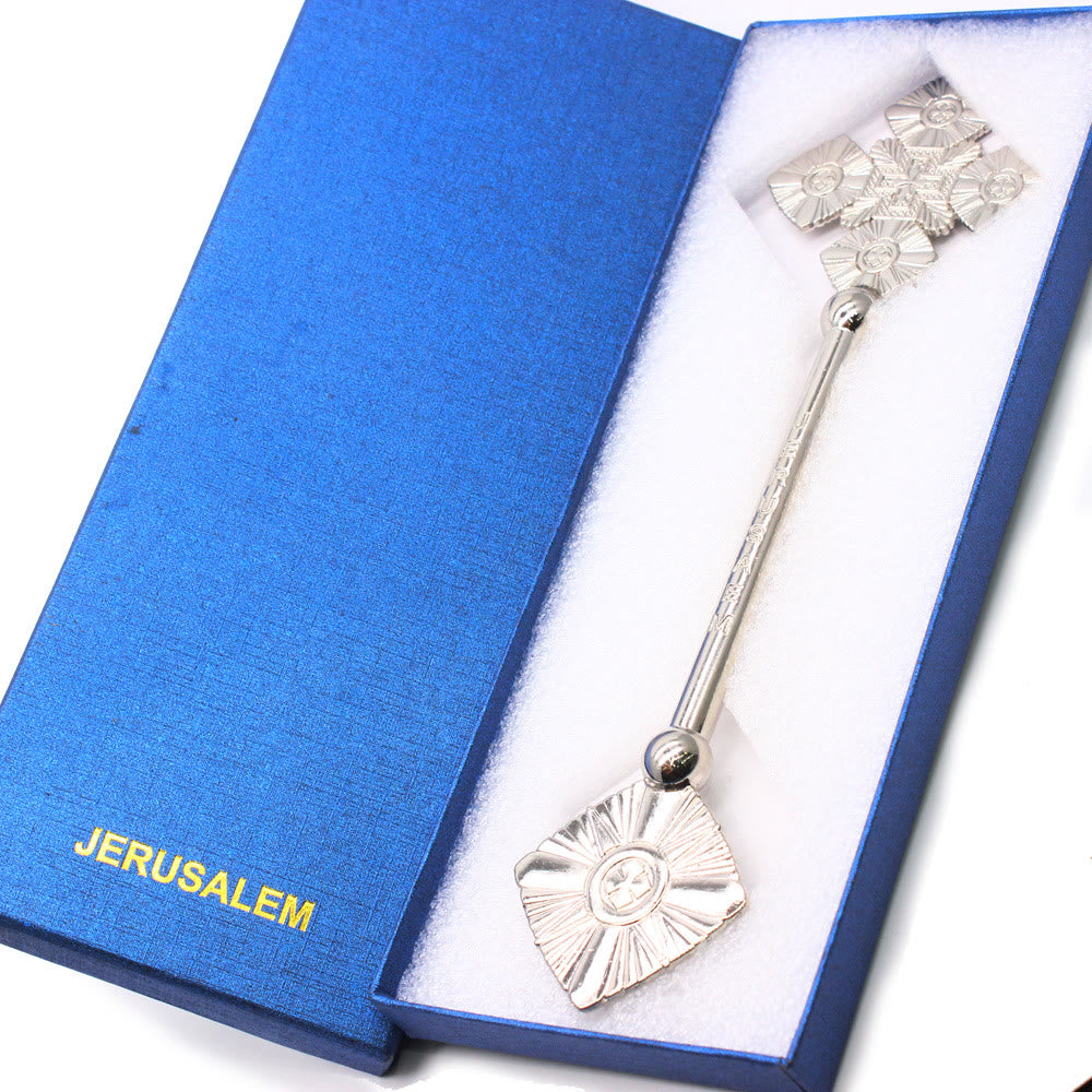 Impugnatura ergonomica: progettata per il comfort, la croce a mano è dotata di un'impugnatura che consente una presa sicura e confortevole, rendendola adatta all'uso durante benedizioni, cerimonie religiose o devozioni personali. Il suo design ergonomico ne facilita l'uso durante le funzioni liturgiche o i momenti privati di preghiera.