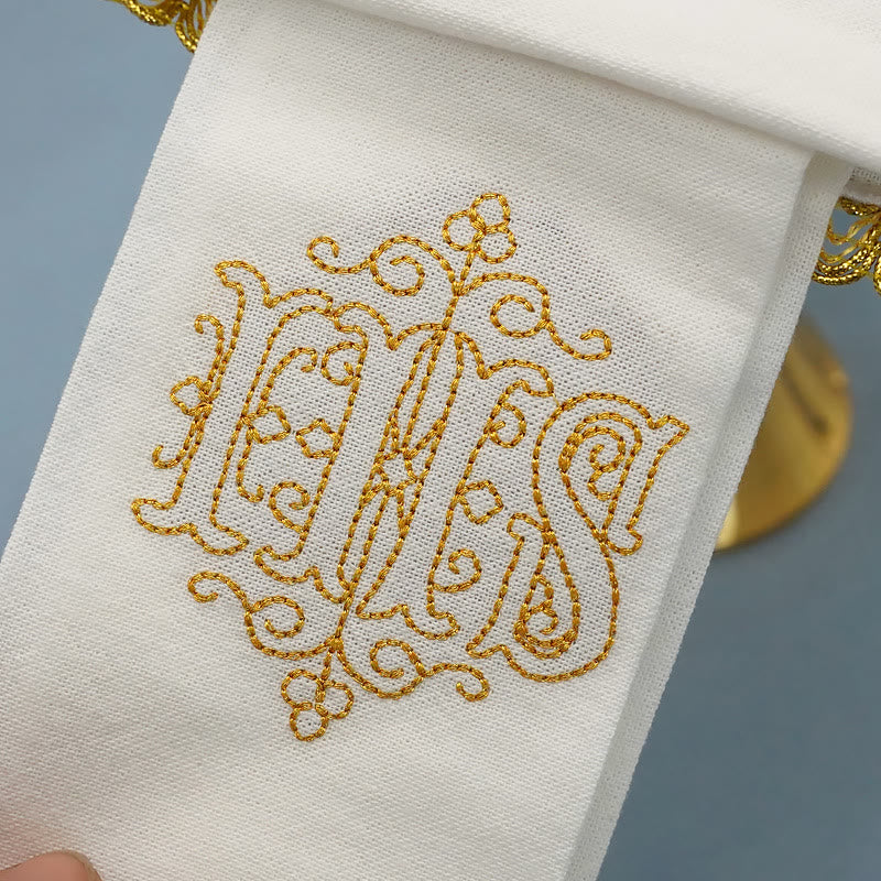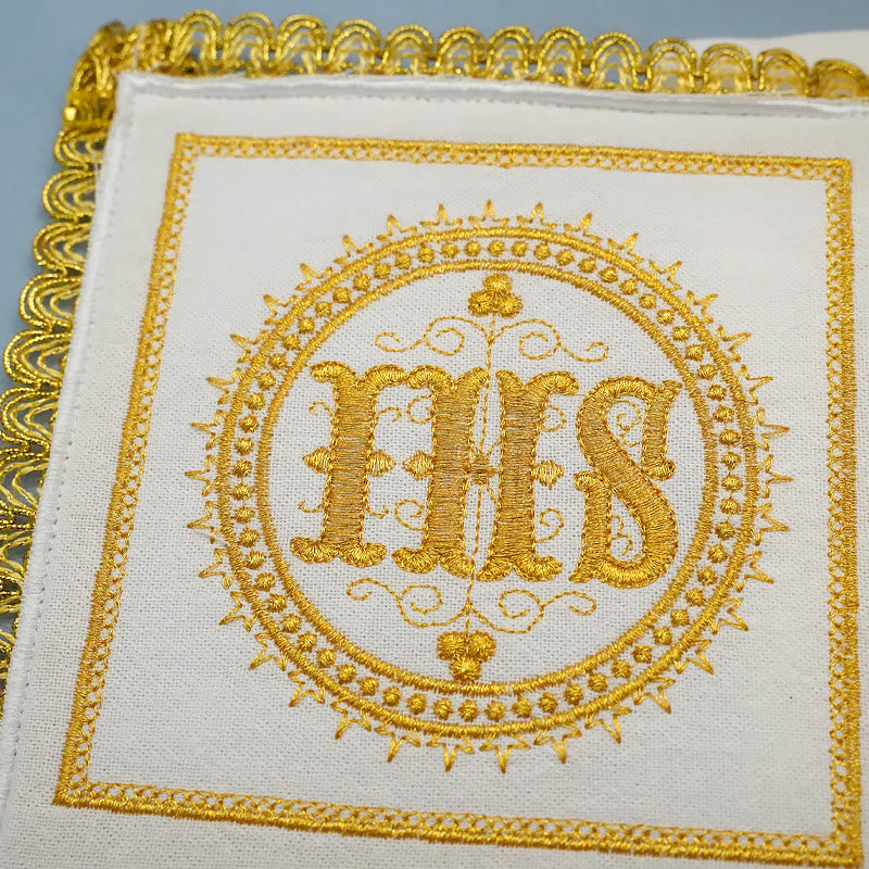 Velo per calice e purificatore ricamati in oro, set di biancheria per altare religiosa (disegno IHS)