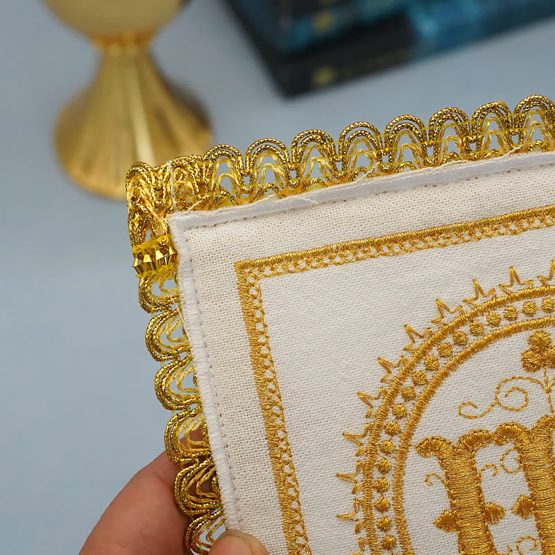 Valorizza le tue cerimonie religiose con il set Velo e Purificatore del Calice Sacro. Progettato appositamente per i cristiani devoti, questo raffinato set unisce eleganza e spiritualità, esaltando la sacralità del tuo culto. - Caratteristiche e dettagli del prodotto: