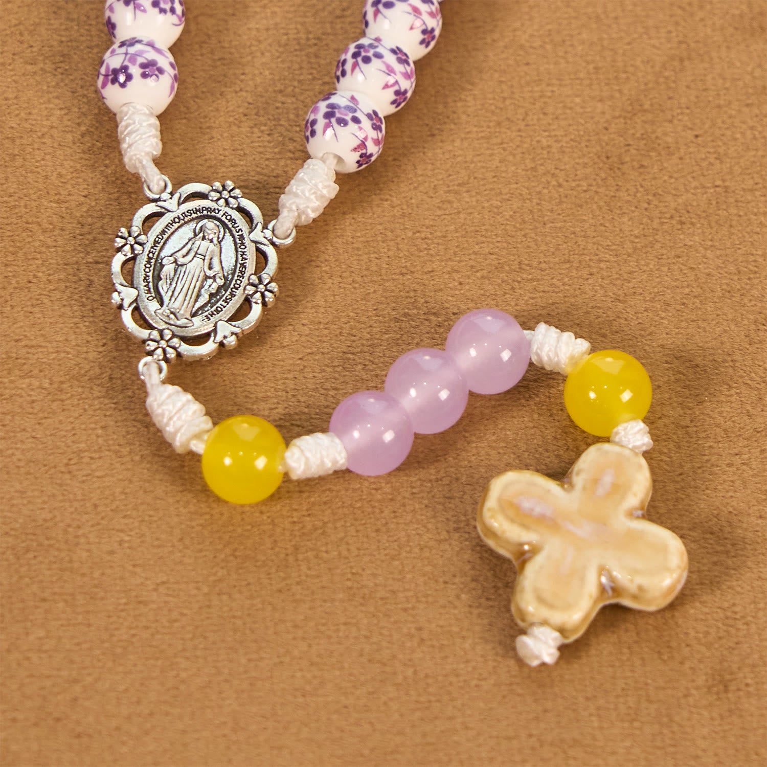 Medaglia miracolosa e croce di perle di ceramica a forma di fiore da 8 mm, rosario fatto a mano per la preghiera sacra