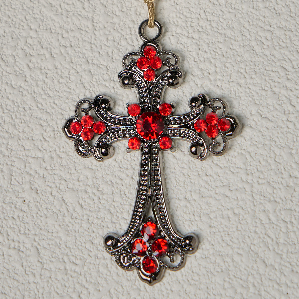L'elaborato crocifisso in pietra rossa riflette il sacrificio supremo e l'amore vittorioso di Cristo. Il suo intricato design e i suoi accenti infuocati evocano la Passione, ricordando ai fedeli il prezzo della grazia e il potere duraturo della redenzione.