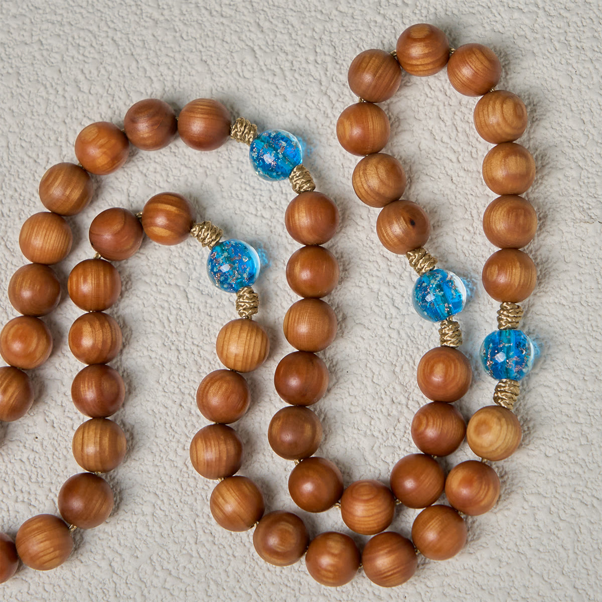 Ogni perla invita a un ritmo di pace, mentre i sereni accenti blu ricordano la grazia sconfinata di Dio che scorre attraverso le maree della vita.