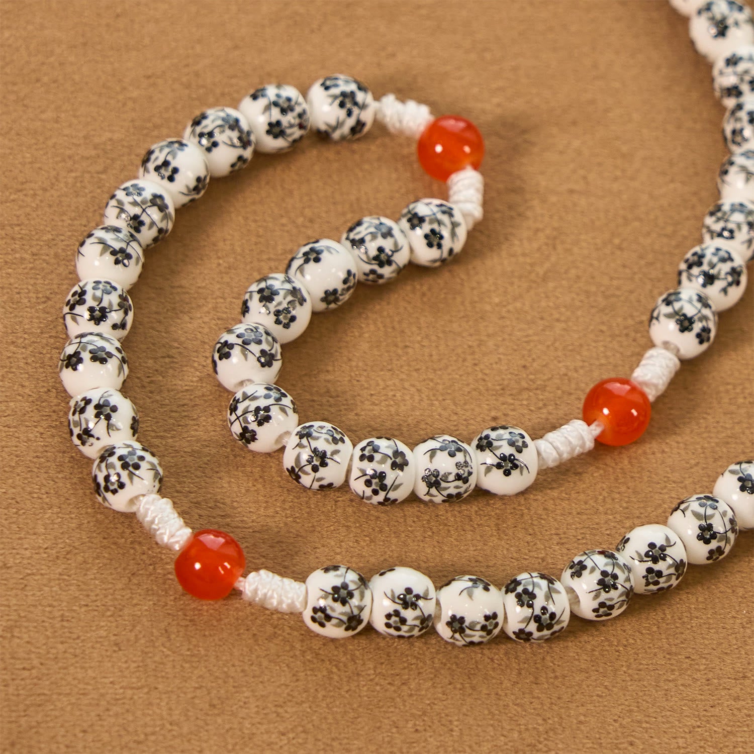 Rosario fatto a mano con medaglia miracolosa e crocifisso di perle di ceramica a forma di fiore da 8 mm - Rosario di protezione divina
