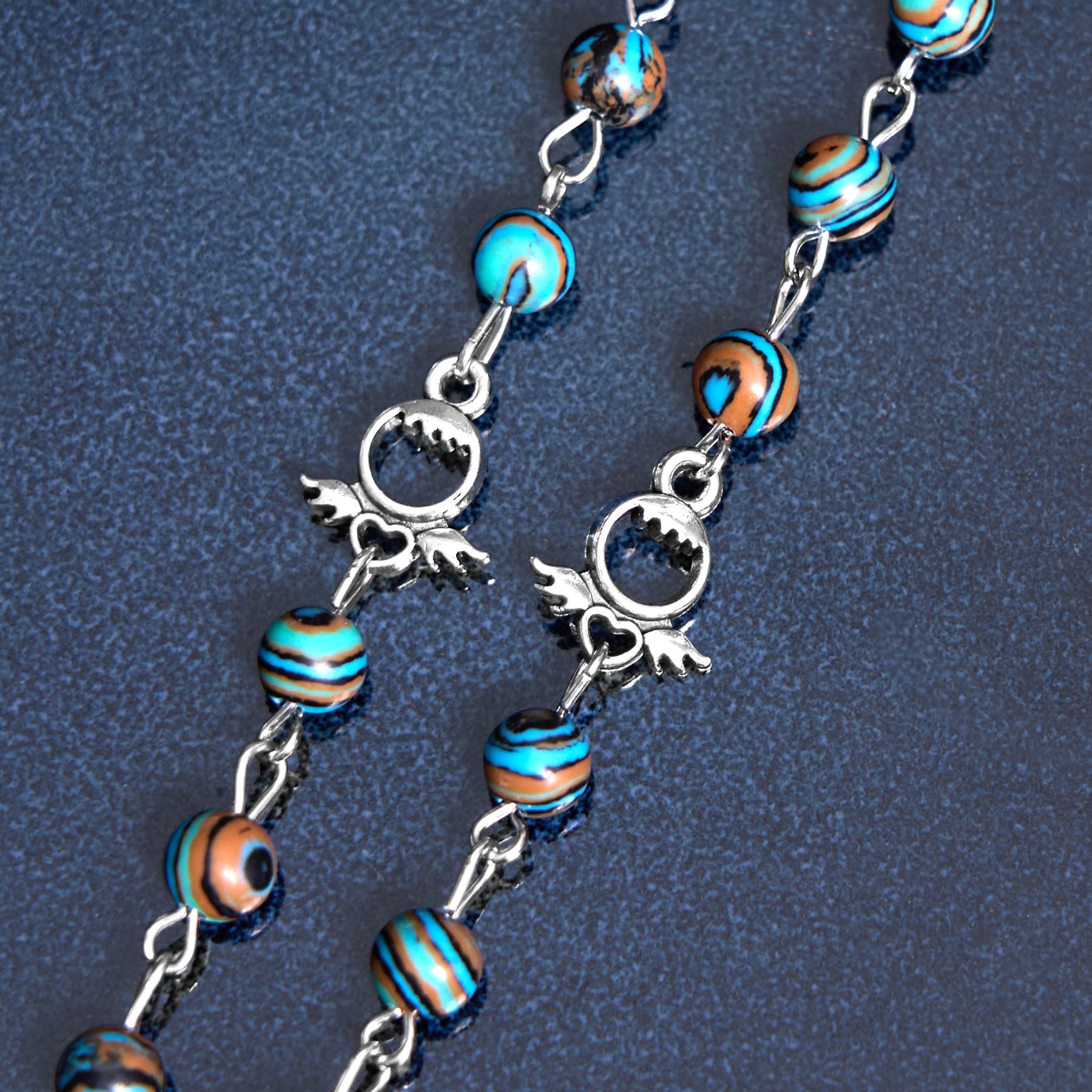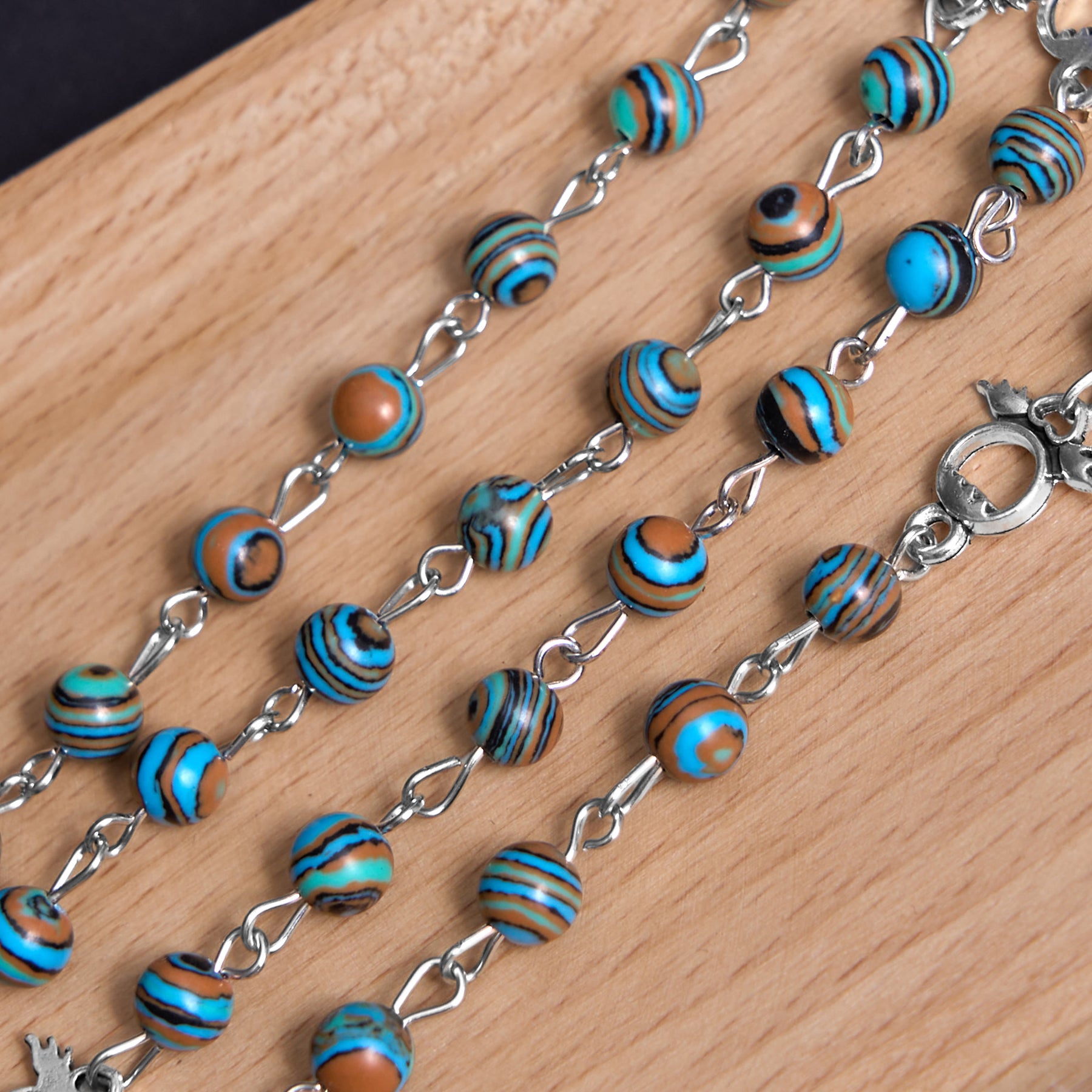 Lascia che il tocco fresco della malachite verde ti guidi in ogni preghiera, aiutandoti a trovare tranquillità e concentrazione. Questo rosario è più di un semplice strumento devozionale: è una presenza confortante che sostiene il tuo cammino verso la pace interiore e la connessione divina.