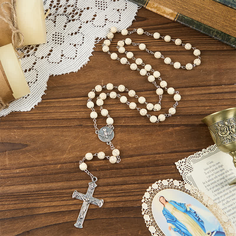 Questo rosario presenta una Medaglia Miracolosa dal design accattivante e un Crocifisso meticolosamente realizzato. La Medaglia Miracolosa risplende con la sua promessa di intercessione divina, mentre il Crocifisso incarna il profondo sacrificio e l'amore di Cristo. Questi pendenti sono realizzati con precisione per garantire che risuonino con il tuo percorso spirituale, offrendo conforto e ispirazione in ogni preghiera. - Somiglianza e conforto in ogni perla