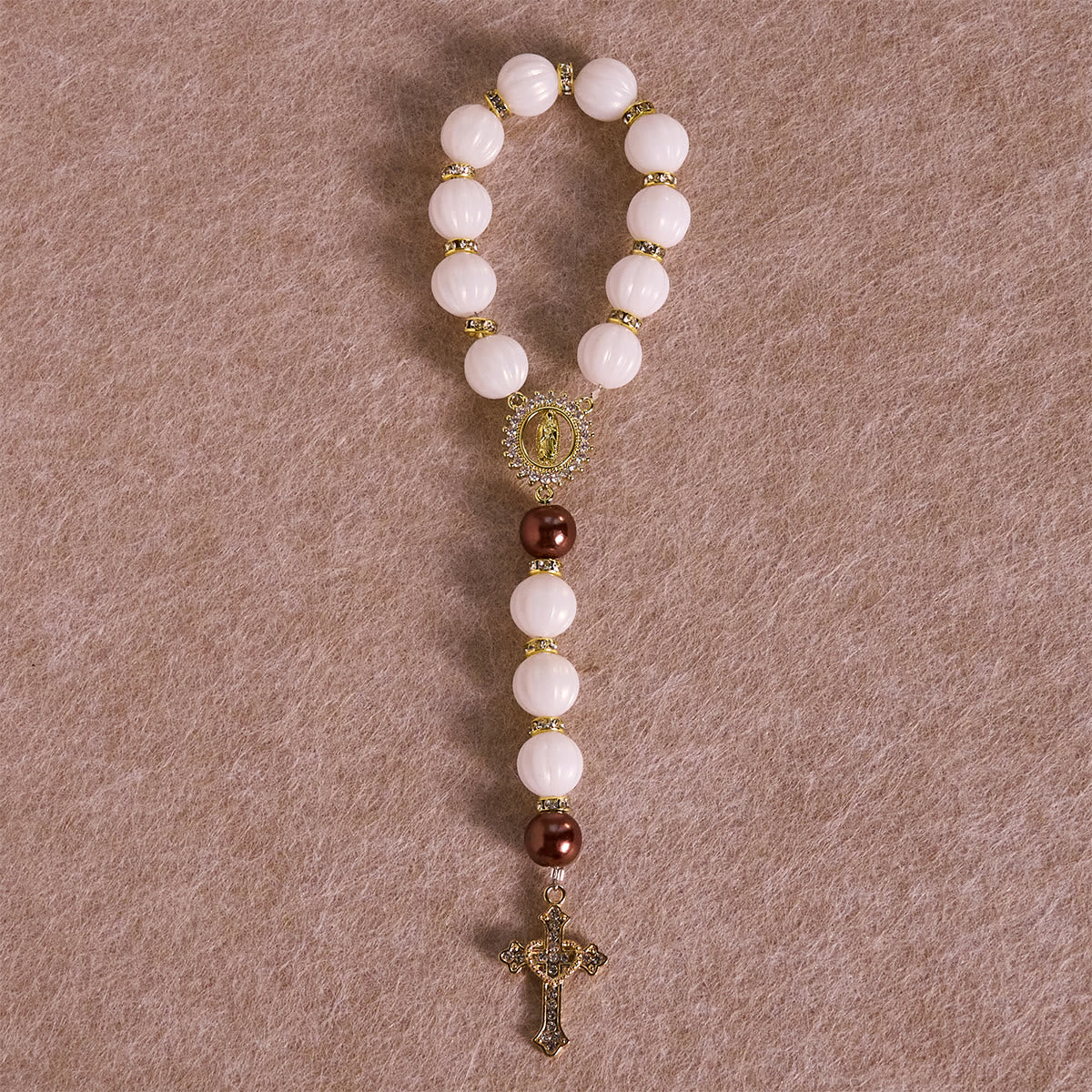 Più che un oggetto religioso, questo rosario testimonia la bellezza della fede. Invita il cuore a dimorare nella grazia spirituale, fondendo l'eleganza dei grani con la sacralità della croce. In ogni grano e simbolo, c'è un sussurro di amore divino, rendendo la devozione opulenta e sentita.