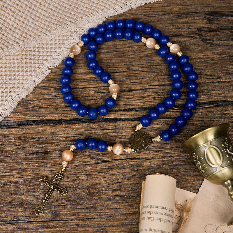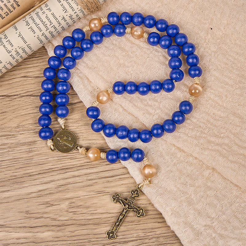Rosario in legno blu fatto a mano: oceano di fede, semplicità e sacralità, perline da 10 mm